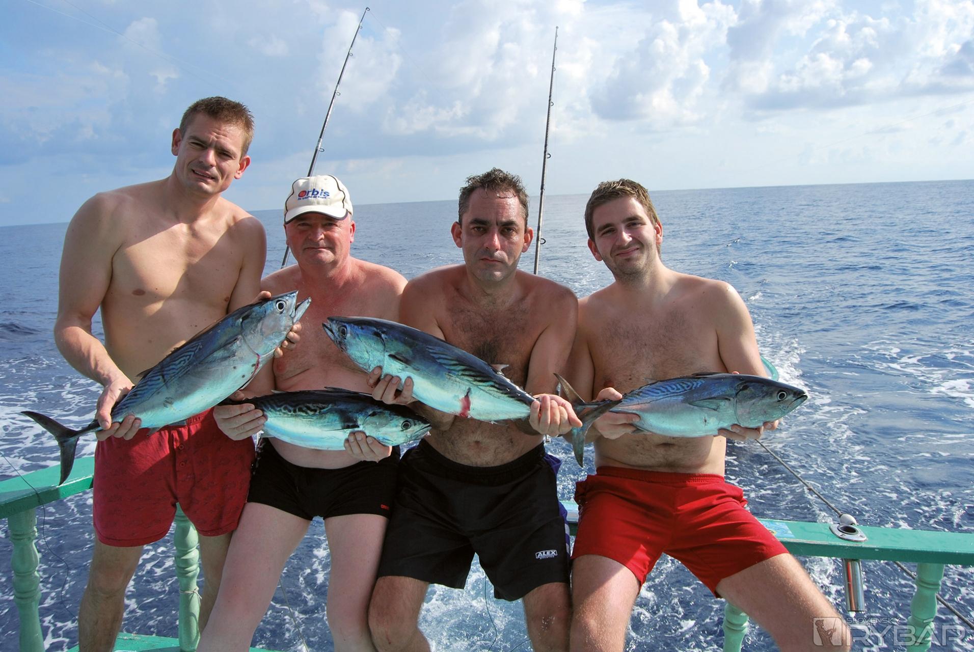 Našim prvým úlovkom je tuniak bonito. Podľa sily odporu a dĺžky zápasu odprisahal by som, že ryby majú aj dvadsať kilogramov. V skutočnosti sú všetky štyri vo veľkosti od troch do štyroch kilogramov. Silu tuniaka si človek uvedomí až pri jeho zdolávaní.