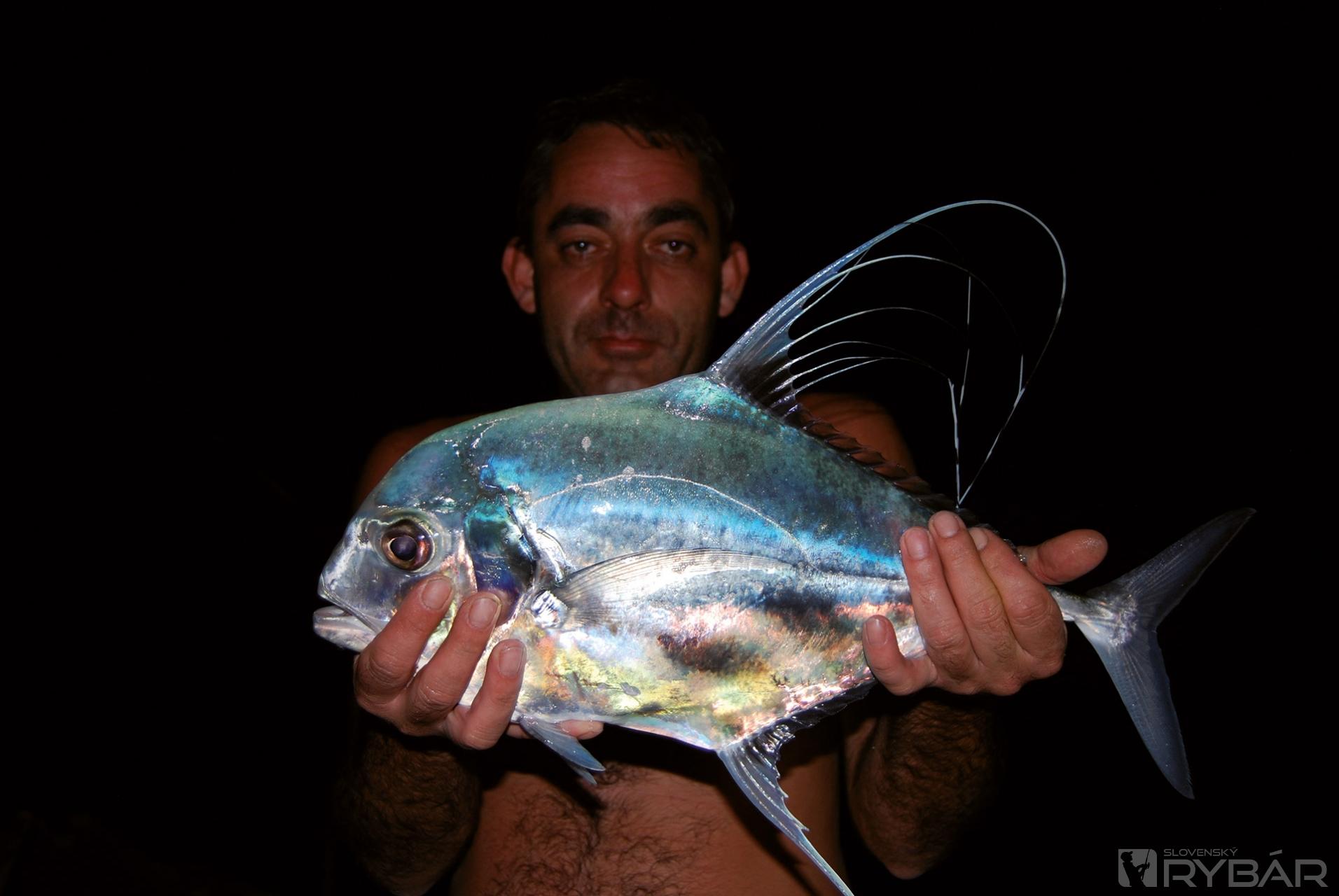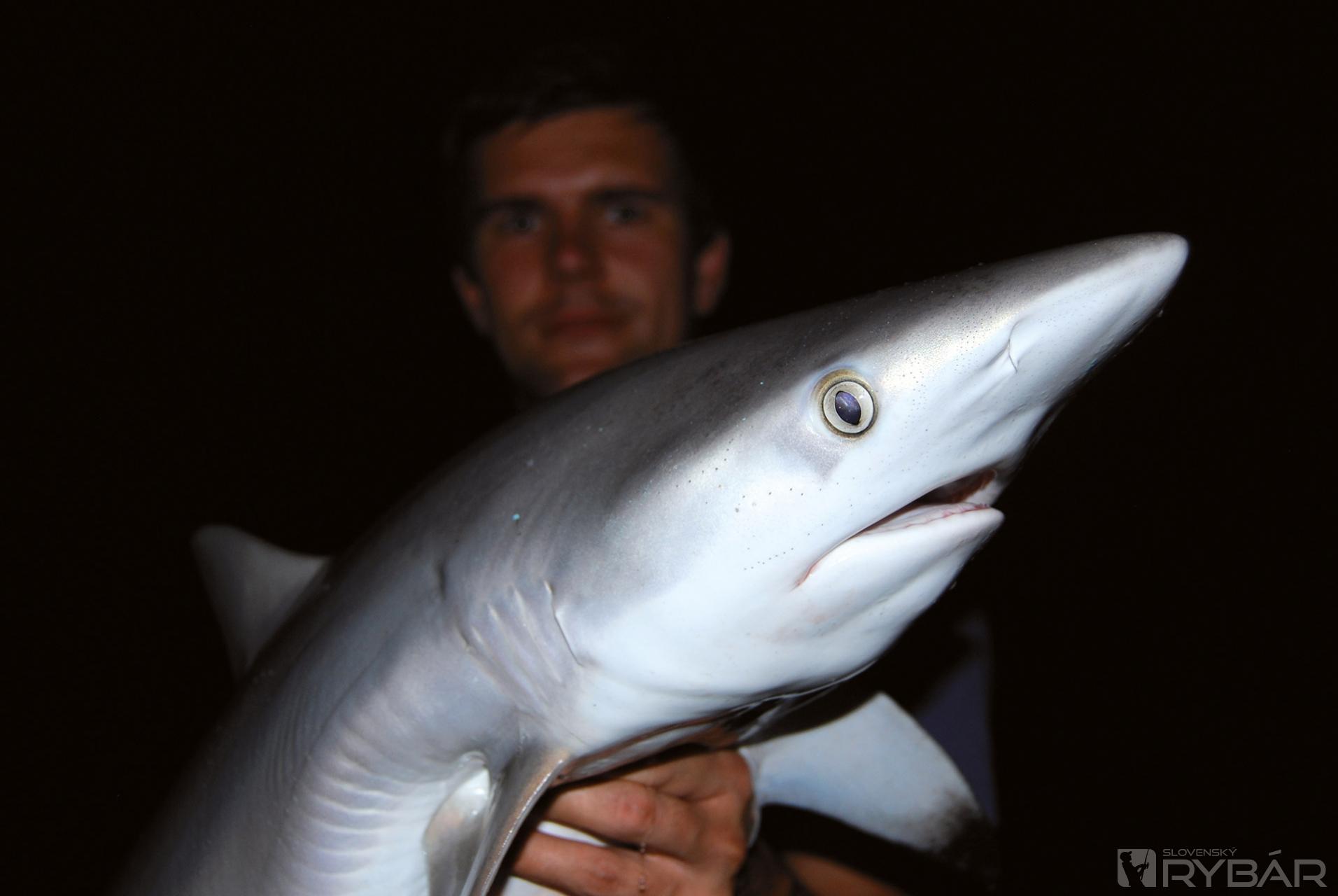 S Milošom na seba letmo pozrieme a nič nehovoriac mi ukáže tri prsty. Veru tak. Toto je už tretia rovnaká ryba, čo sme chytili a zakaždým sme ju stískali v rukách. Pripísali sme si ďalšieho bobríka za odvahu (a či za hlúposť?). O chvíľu Ľuboš a Martin vyťahujú dva žraloky. Ten väčší má niečo cez meter a nenormálne sa mece na palube. Nadväzec od šnúry je ihneď prehryznutý. Neviem, či majú naši čierni priatelia väčší strach, alebo viac rozumu ako my, ale k žralokom sa príliš nehrnú. Chalani si svoje úlovky chytili za chvost a pod brucho a ja ich rýchlo fotím. Asi fakt bude lepšie, ak ich rýchlo pustíme. Na záver večera Miloš vyťahuje ďalšieho červeného snappera, ktorý pri odstraňovaní háčika urobil hanbu. Vyletelo z neho za hrsť špagiet, ktoré sa roztiekli po palube a boli to presne tie, ktoré sme vysypali do vody z nezjedenej večere. Samozrejme, kari.