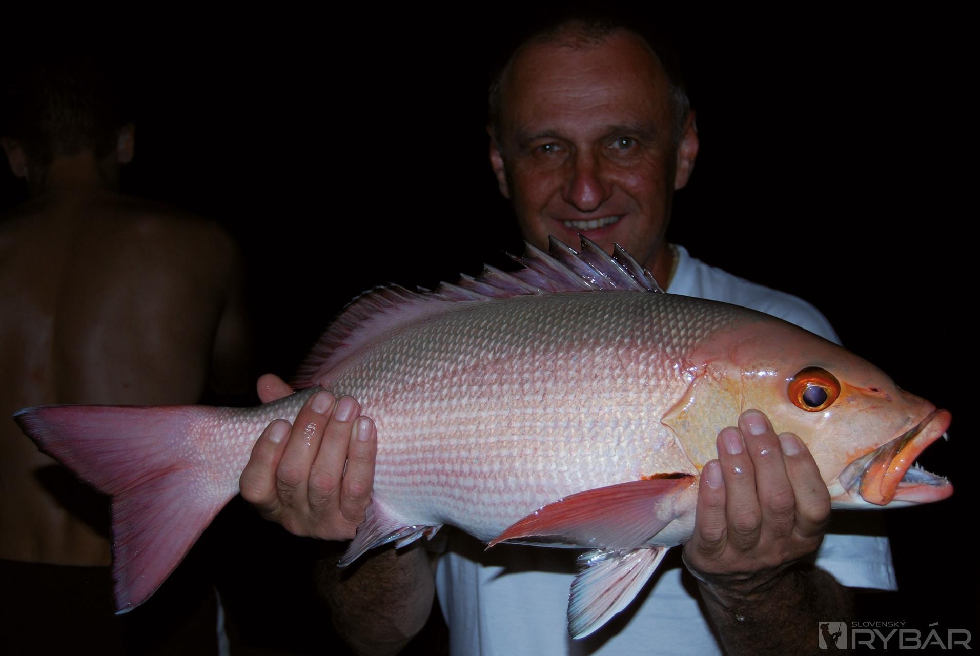 Martin zhodnotil situáciu pred sebou a končí s prípravou udice. Presedláva na ťažký kaliber a začína pripravovať tristogramovú udicu, ktorú používal cez deň na poppingovú prívlač. Medzi tým som zdolal štvorkilového červeného snipera, ktorý sa tvarom tela veľmi podobal na naše ostrieže.
