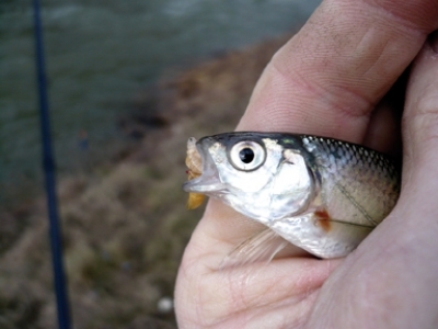 Opätoval mi „vražedný” pohľad v zmysle – no a čo?? Lovil spokojne ďalej. To, že sa na tomto mieste vôbec objavil, nasvedčovalo tomu, že to tam dobre pozná a vedel aj to, že uloviť tieto rybky pri troche snahy nie je žiaden problém. A výskyt rybárskej stráže tu a v tomto čase je skôr výnimočný.