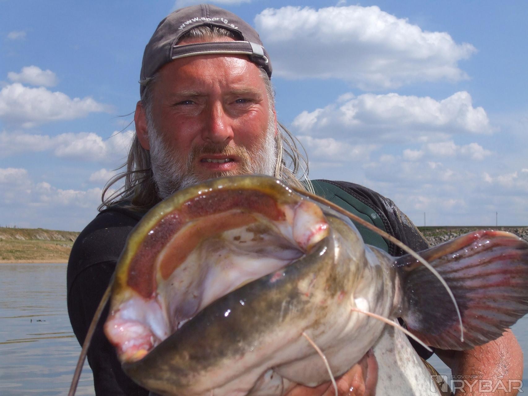 Po roku opäť stojíme na našom starom mieste. Voda je zase o čosi nižšie. Spúšťame loď, montujeme prúty a vyrážame vábiť. Sumce sa ukazujú takmer okamžite. Po chvíľke prichádza prvý záber. Zostava prikrášlená červenožltou gerberou zachutila ani nie meter dlhému sumcovi. O chvíľu vyberá na svoj systém s chobotničkou podobnú rybu aj Majo.
