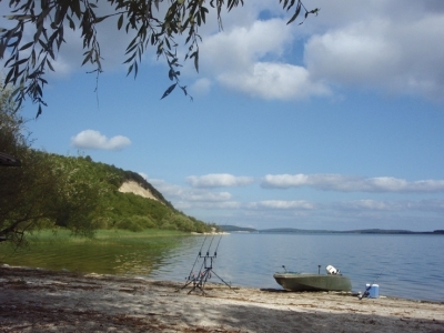 Po dvoch hodinách hľadania nachádzame ďalšiu zátoku. Spúšťame loď, rozkrmujeme miesto, na ktorom budeme chytať kapry a feedrovať. Sonarom zisťujem, že terén vhodný na trhačky sa tu prakticky nenachádza. Je jasné, že na tomto jazere bude hrať „prím“ vábnička.