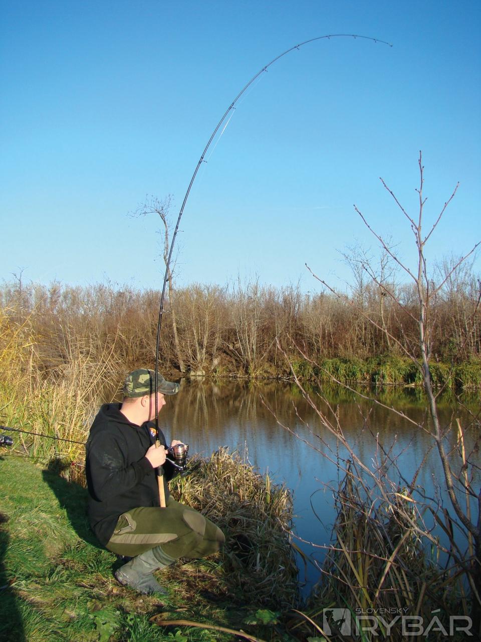 Pri rozhovore nám rýchlo ubieha slabá hodinka, keď Miloš spozornie a rukou mi potichu ukazuje pod opačný breh na odumreté listy trstiny, ktoré sa napriek bezvetriu opäť jemne zavlnilo. Prebehne pár nekonečných sekúnd, kým sa ozýva vytúžené pípnutie. Miloš vystrelí ako raketa, ale pri udici sa zháči, lebo swinger sa len jemne chveje a o zábere ani počuť.
