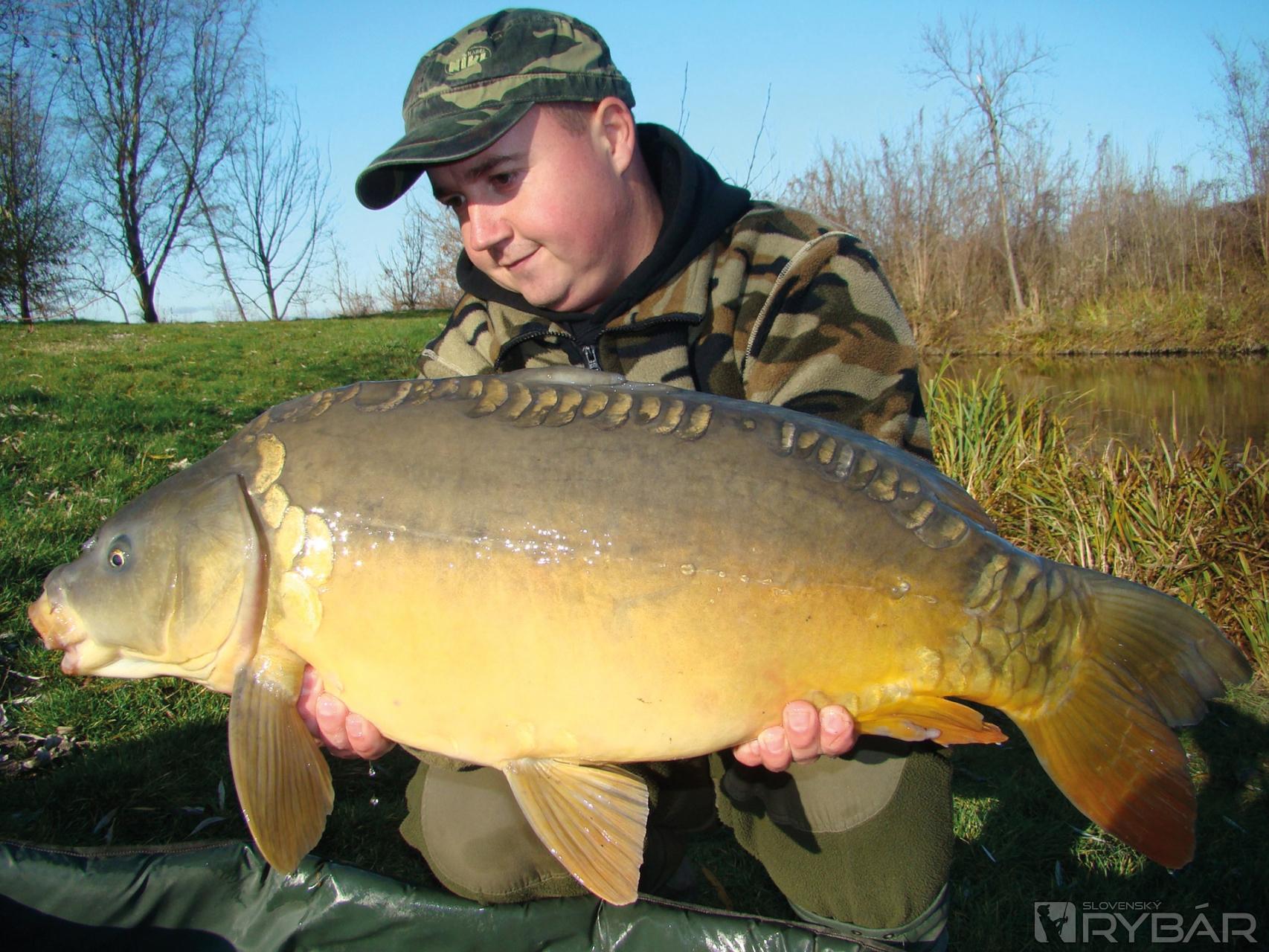 Čupnem si neďaleko a dokumentujem celý priebeh zdolávania. Uplynulo asi 10 minút, keď sa konečne objavuje koniec olovenky a pod ňou slušný tieň ryby. Po pár otočkách sa Milošovi darí pritiahnuť kapra ku hladine; ten akoby sa zľakol dvoch príšer na brehu, s vypätím síl zaberie a začína sa boj odznova. Robím možno 30 fotiek, kým sa podarí kapra pritiahnuť ku brehu a podobrať. Po uložení na vyhačkovaciu matrac krátko vydýchnem.