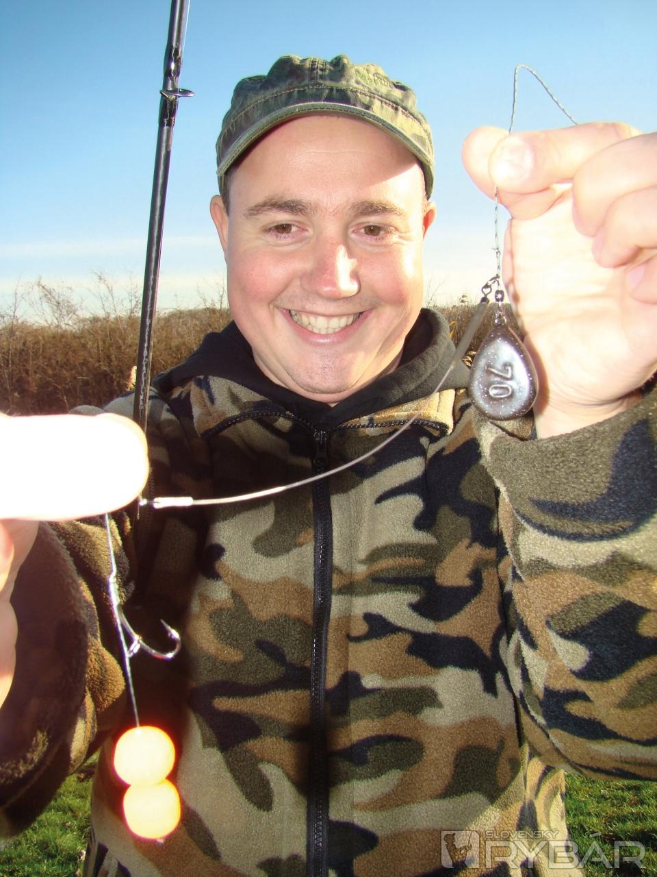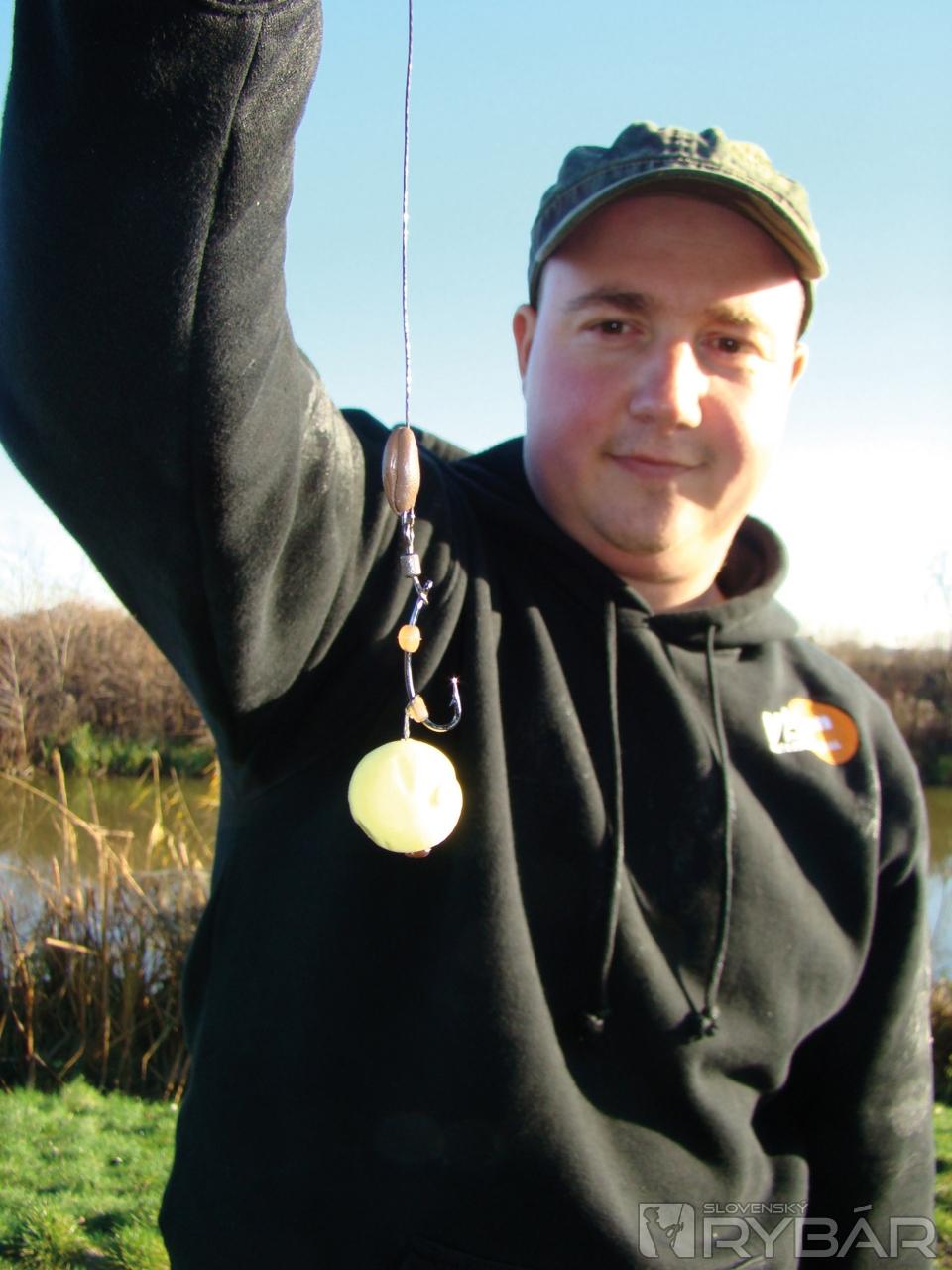 Túto montáž Miloš posiela k potopenénu kríku po pravej ruke. Montáž s boilies doslova pošteklí konáre kríka a pomaly sa potopí vedľa potopeným koreňov. Tak, pasce sú pripravené a prišiel čas na krátke posilnenie. Horúci čaj nám rozohrieva skrehnuté prsty, Miloš nelení a už sa prehrabáva vo svojom „skladisku“ s montážami. Vyberá kratšiu 360° montáž na lov s pop-up, napichuje 16 mm ananásovú fluoro-pop up a namáča ju do dipu.