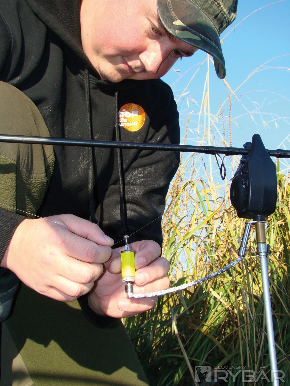 Silón napína ľahkým retiazkovým swingrom a signalizátor nastavuje na najvyššiu citlivosť. Vzápätí berie do rúk kobru a do okolia montáže nakŕmi za hrsť drobných boilies.