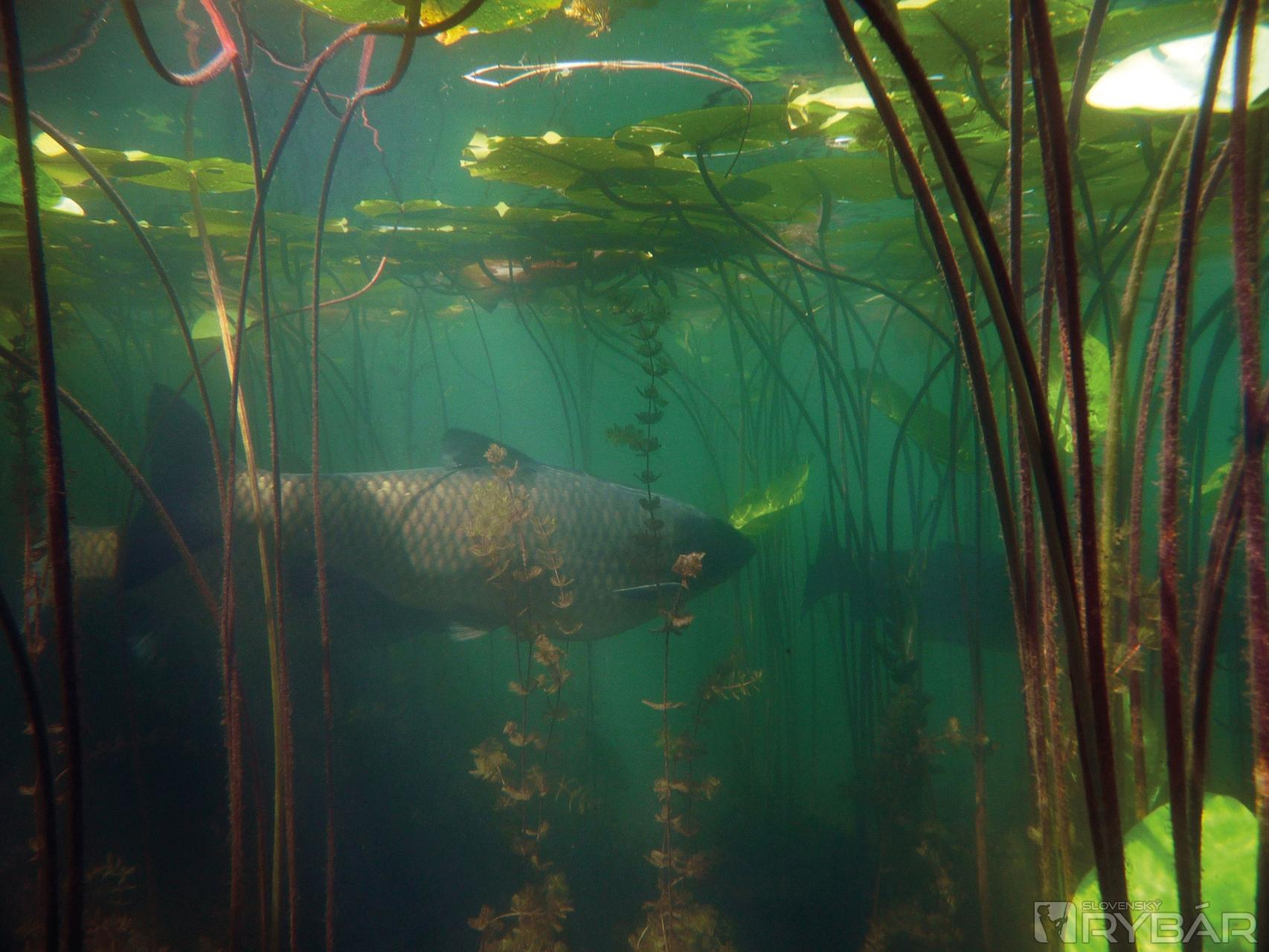 100 % vieme, že sa tam nachádzajú ,,monštrá“, nemusí byť vždy jednoduchý. Pri šnorchlovaní na jednom jazere som sa dostal k amurom neskutočne blízko. Videl som nádherné ryby, ktorých hmotnosť som odhadoval na 25-30 kg. Samotný lov na tejto vode som si však už taký jednoduchý predstaviť nevedel. Takmer okolo celého jazera sa popri brehu ťahal 20 m pás hustých vodných tráv a lekien. K tomu sa pod vodou nachádzalo množstvo stromov, rôznych koreňov a popadaných konárov. Amury a kapry boli poschovávané medzi najhustejšími leknami a nemali dôvod tieto miesta opúšťať.