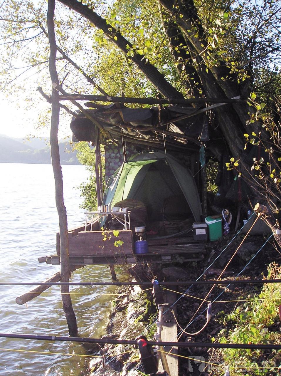 Osobne používam už niekoľko sezón bivak Starbaits Challenger, ktorý v takýchto prípadoch staviam bez zimného plášťa; ten ho predlžuje o 120 cm, pričom obvykle takéto zväčšenie obytného priestoru nie je na týchto miestach možné. Je pre mňa veľmi výhodný z hľadiska jeho variability, pretože ho môžeme uplatniť v rôznych situáciách, v ktorých lovíme. Odzipsovanie prednej steny mi výrazne zníži nároky na veľkosť priestoru pod bivakom a zvýši šance na jeho umiestnenie aj v náročnejšom teréne.