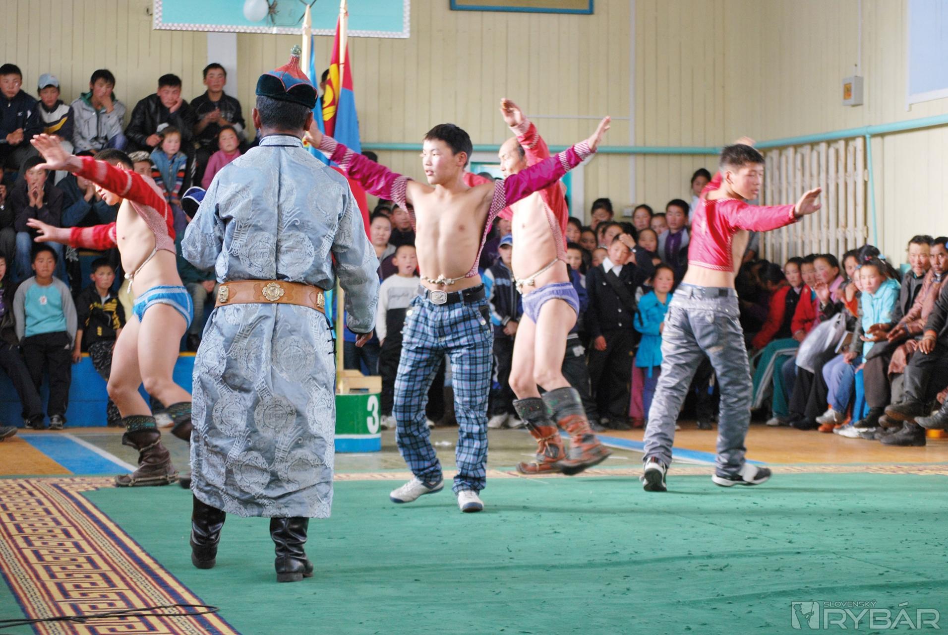 Jeden slnečný deň naša štvorica zasvätila celé popoludnie mongolskému spoločenskému životu. Na základe pozvania sme navštívili asi tridsať kilometrov vzdialené mestečko (našinec by to nazval dedinou), vďaka ktorému bol v našom tábore z času na čas prebleskujúci signál na mobile. Prezreli sme si miestnu školu a nazreli i do triedy počas vyučovania. Tri hodiny sme boli na mongolských zápasoch detí aj dospelých v školskej telocvični. Stretla sa tam celá dedina, pardon mestečko, a ja som pocítil takú silu spolupatričnosti miestnych obyvateľov, aká bola na našej dedine pred päťdesiatimi rokmi, v čase majálesov, alebo na driapačkách peria.