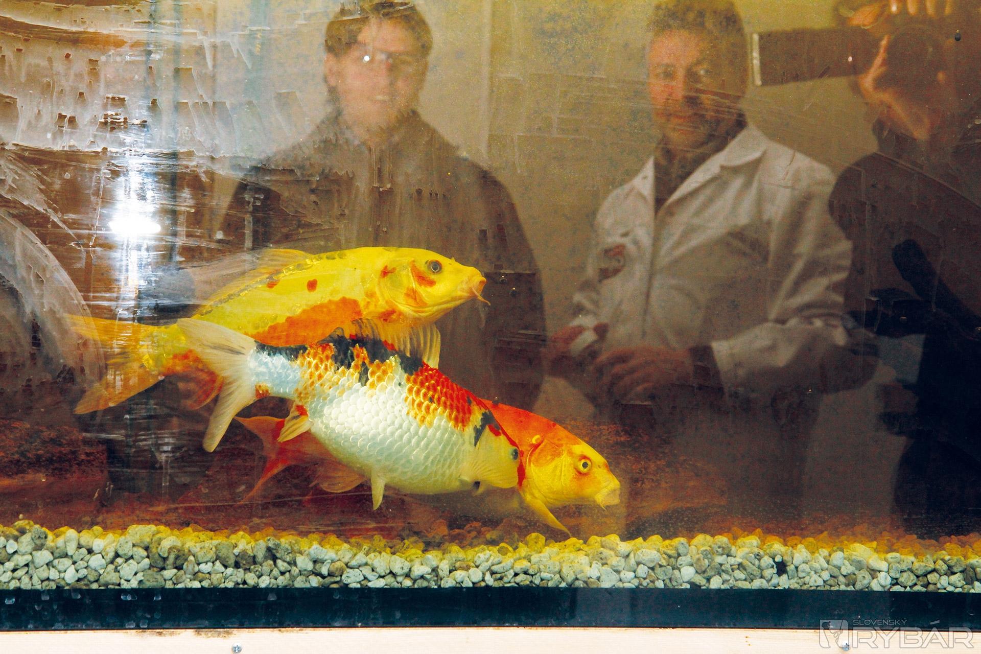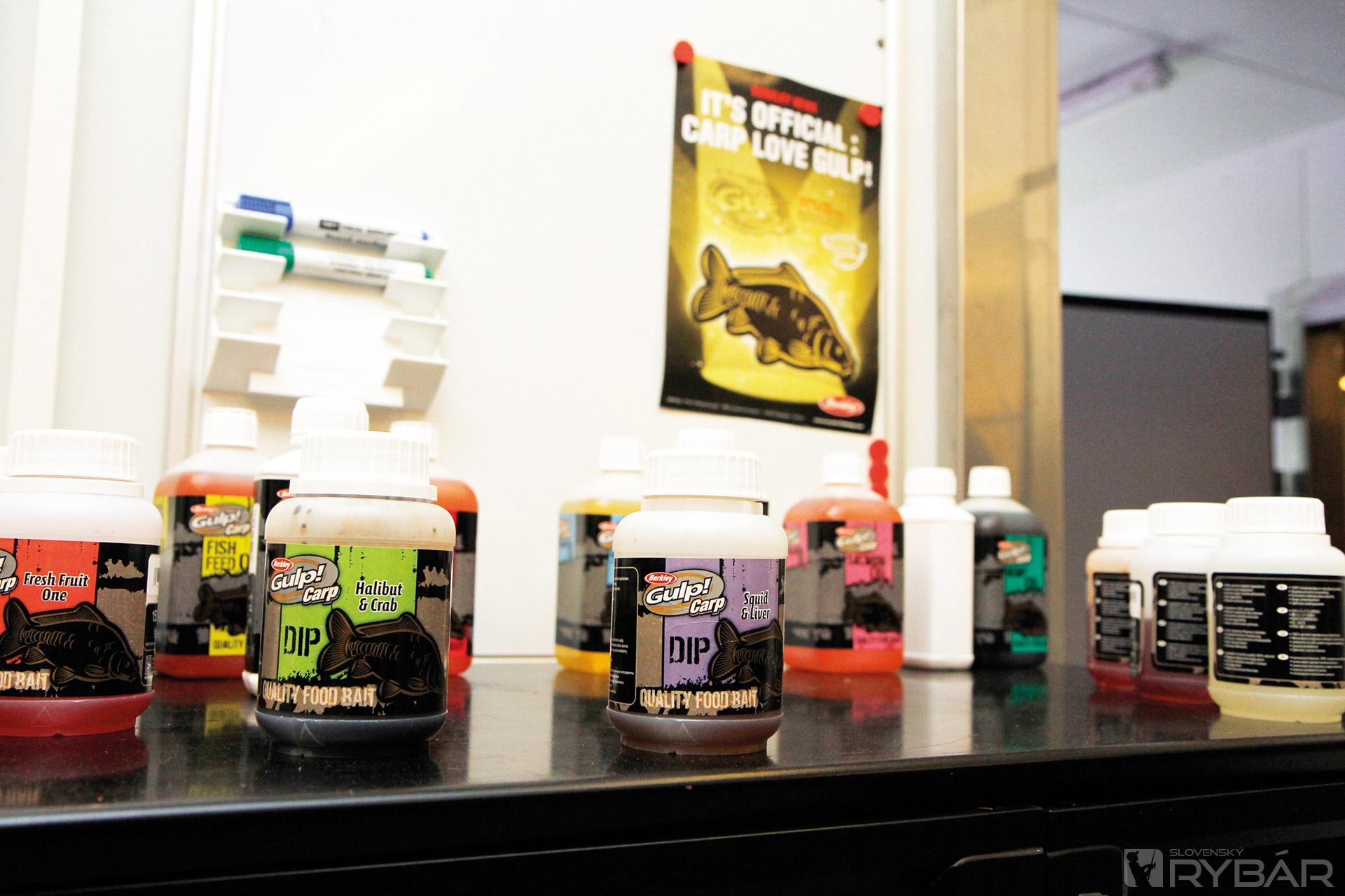 Improvizovaný sklad je plný vriec s pop-upmi rôznych farieb, chutí, vôní. Všade plno guľôčok, farieb, vôní, pachov. „Nie je to veľká fabrika, ale ako sami vidíte, pracujeme na 100 %. V prednej časti máme testovacie akváriá s kapríkmi. Tu sledujeme ich reakcie na rôzne druhy nástrah a návnad. Na začiatku mali tieto ryby asi 15 centimetrov. A teraz? Krásne zdravé päťdesiatky. Takto nám vyrástli len za 2 mesiace,“ - hrdo sa usmievajú naši priatelia.