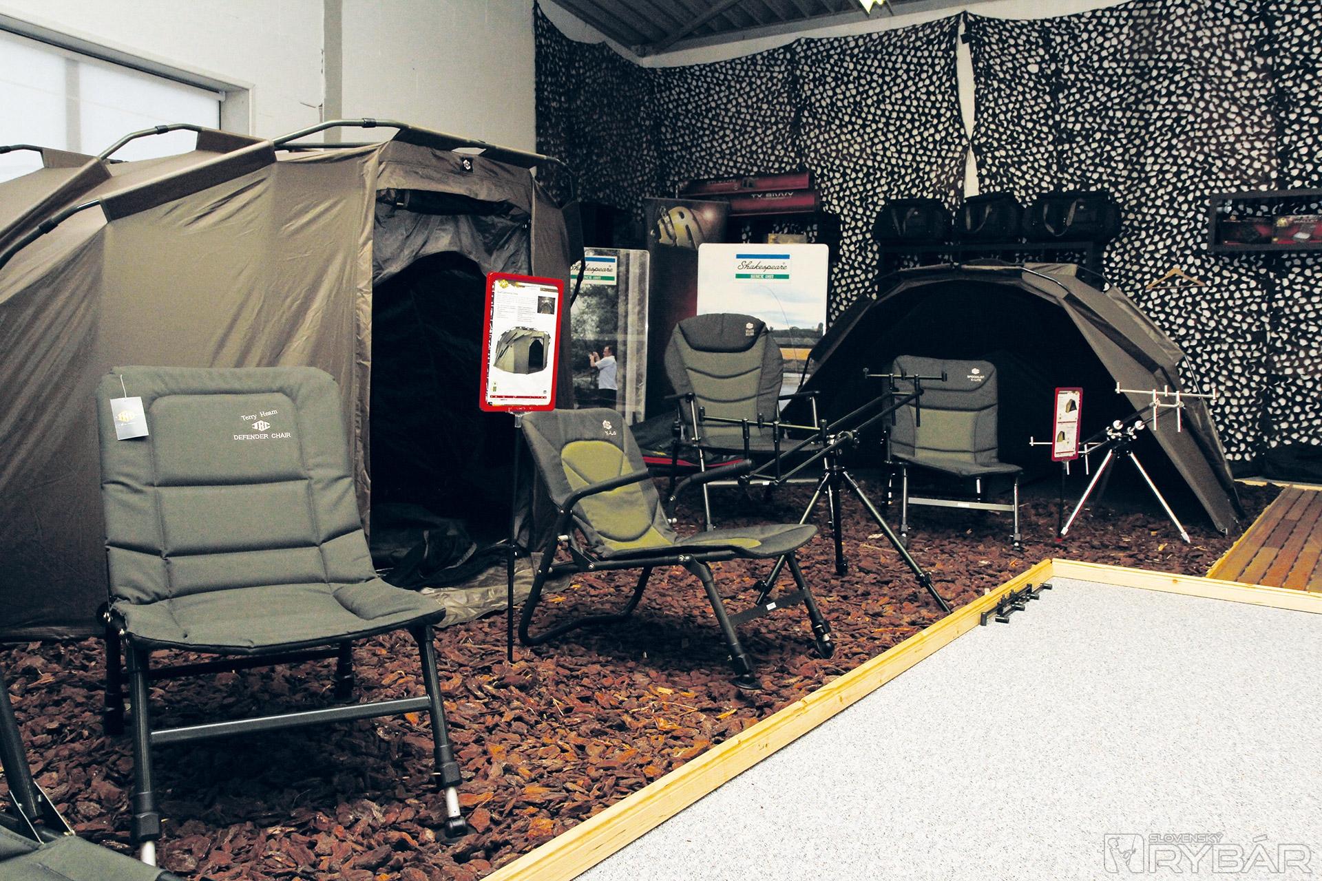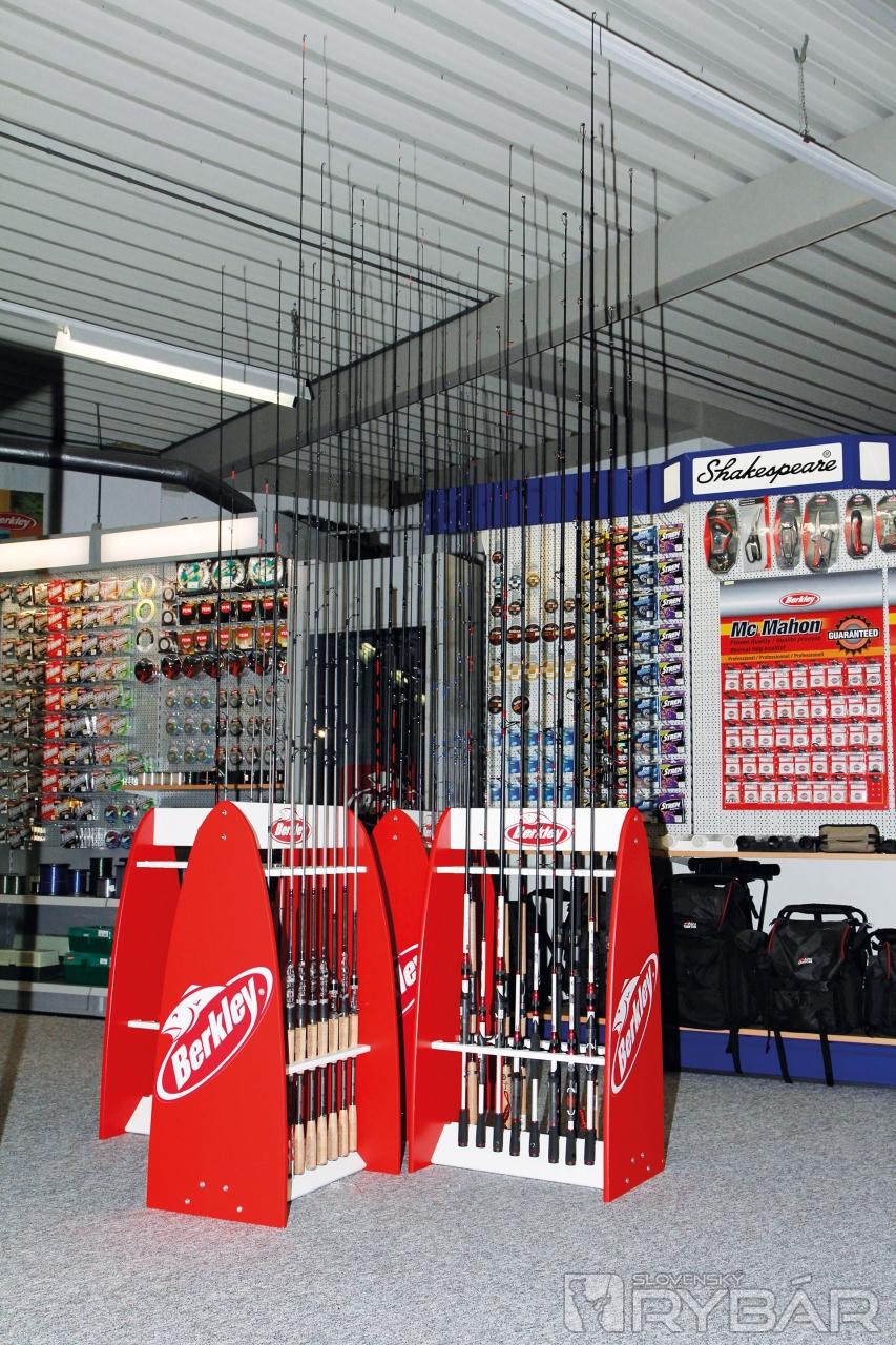 Všetko je priestranné a dobre navrhnuté. Rozhodli sa predstavovať všetky značky dohromady. Tým sa vytvoril nádherný kút Berkley, Abu-Garcia a zdieľa útulný kútik s bivakmi JRC, ležadlami a spacími vakmi. Pôsobivá je zbierka šnúr Berkley, Stren a Spider Wire. Žiadnym očiam nemôžu uniknúť vkusné vitríny s multiplikátormi Penn a úplne nové navijaky Abu Garcia Revo Neos, vyvinuté pomocou nanotechnológie. Veľkej stene kraľujú navijaky Shakespeare a svoje zastúpenie tu má aj značka Fenwick. Rybárovo srdce jednoducho musí zaplesať.