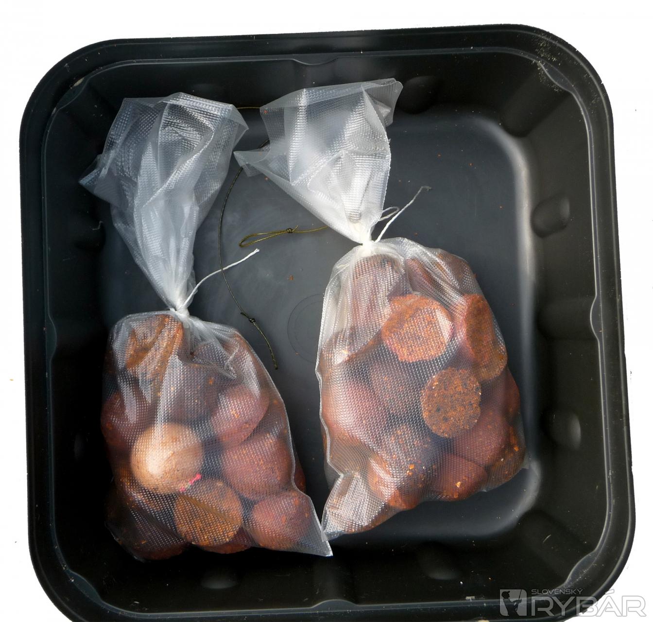 Tom si berie za úlohu prípravu montáží, ja prebrusovanie háčikov. Všetky montáže vkladáme do PVA vrecúšok, ku ktorým pridávame rozkrájané boilies a 8 mm mini peletky Signal. Pripravujeme si aj niekoľko montáži navyše, ktoré vkladáme do vodotesných škatuliek /bait box/ a máme ich vždy pripravené v člne.