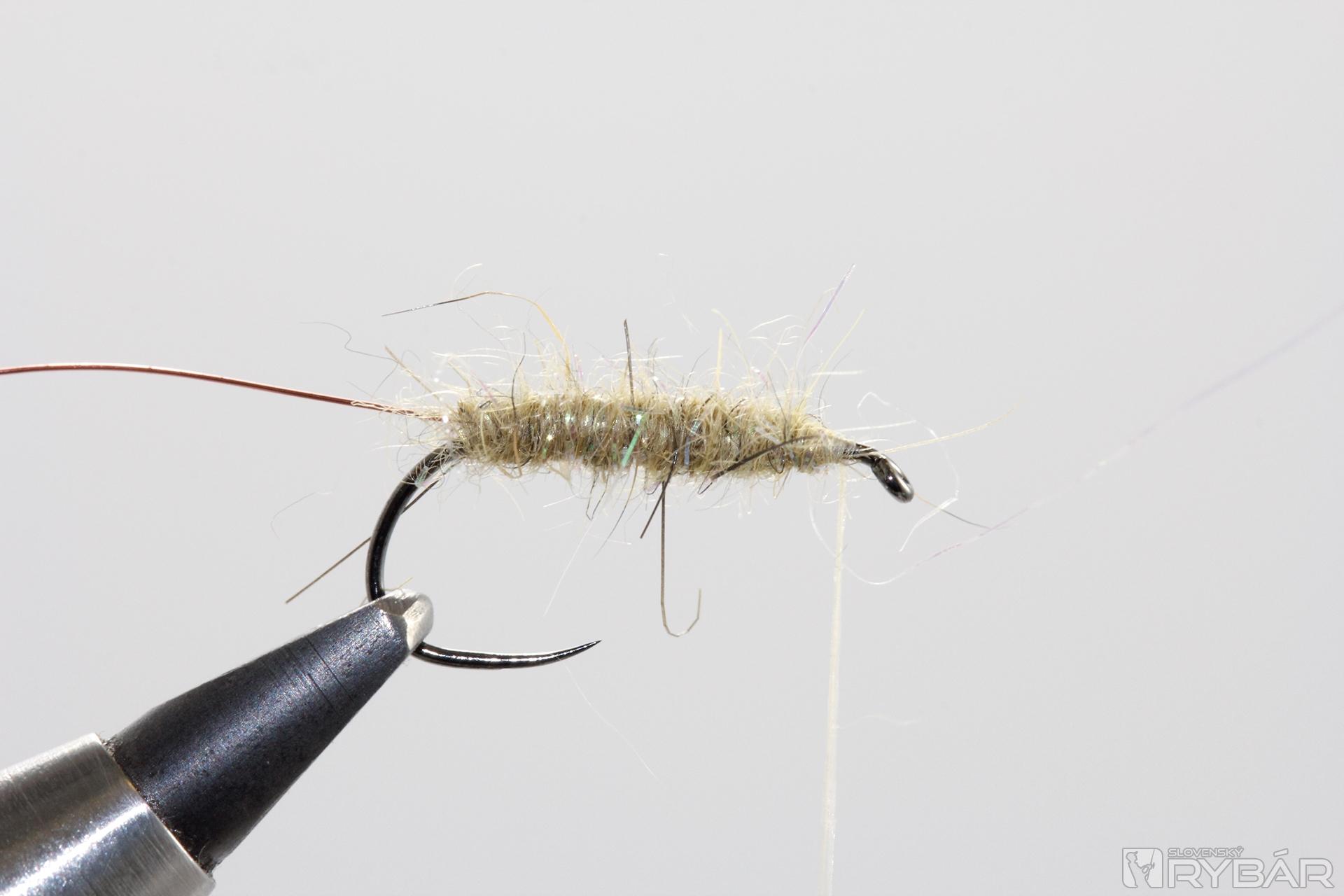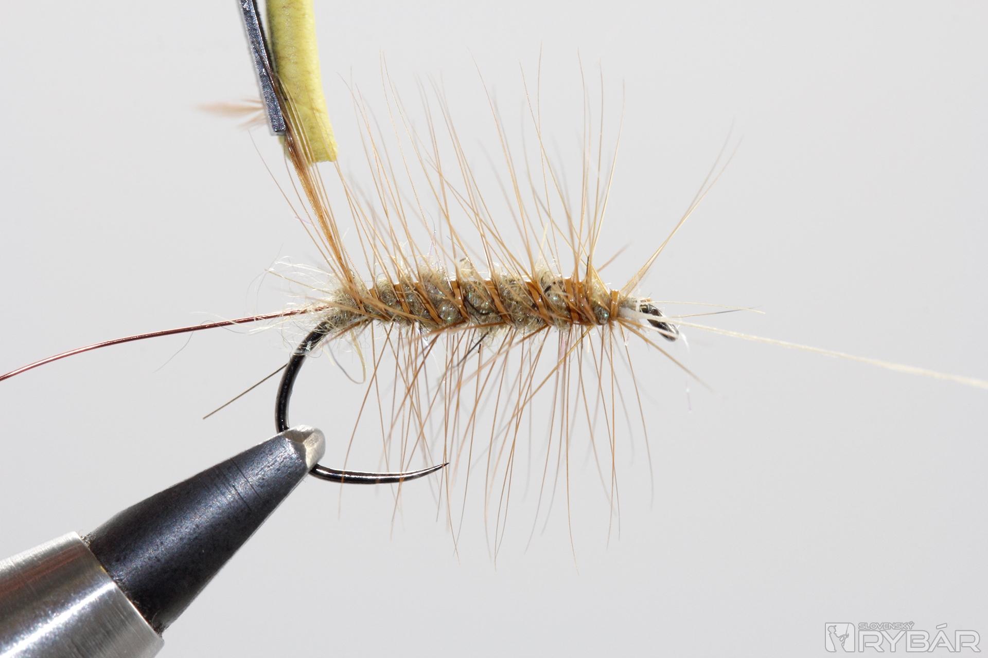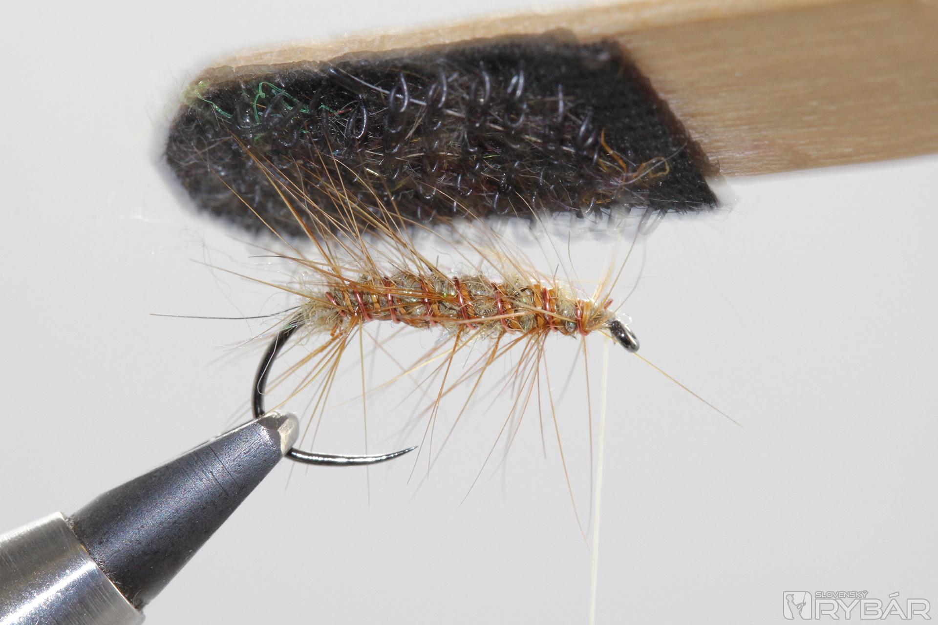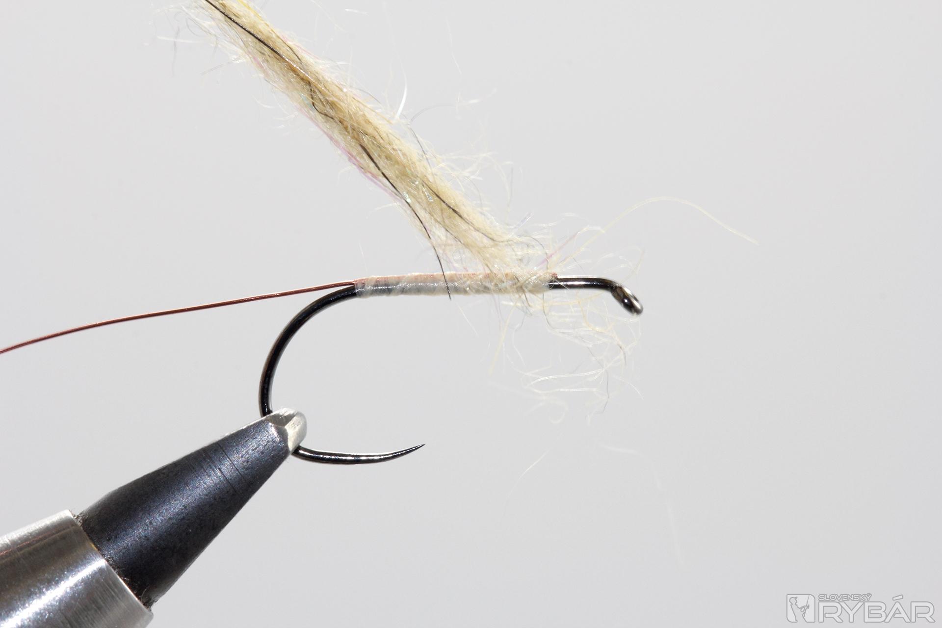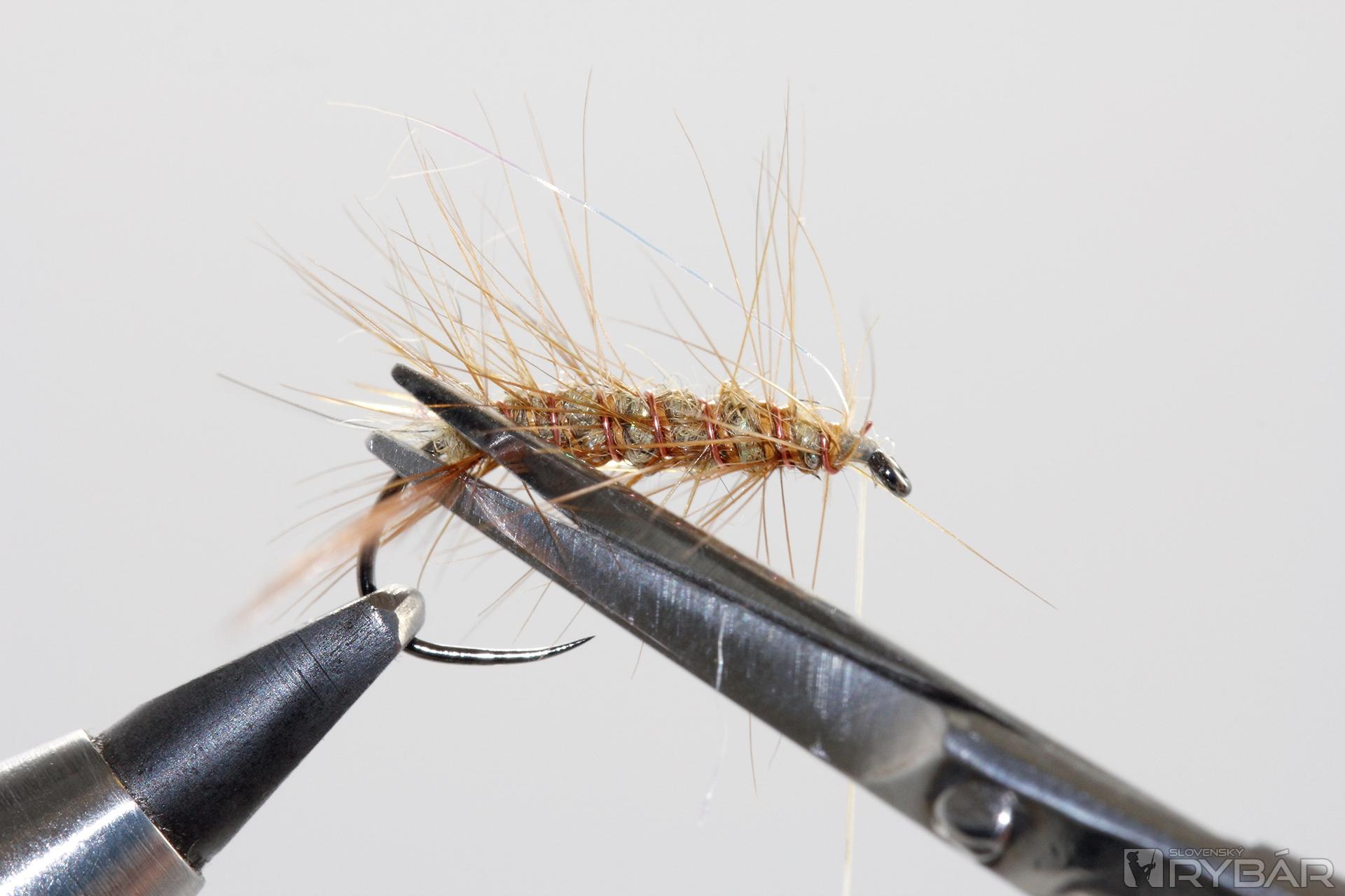 Zvyšné konce srsti ostrihajte do požadovaného tvaru, zakončite strateným uzlom a muška je hotová.