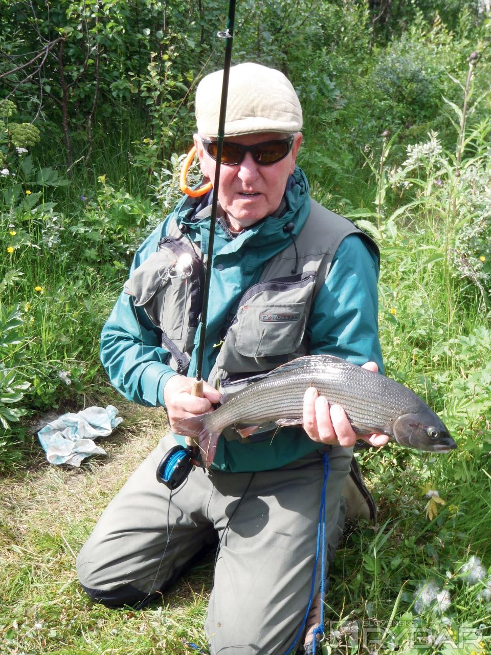 V podstate celú výpravu sme odchytali s 5 druhmi mušiek, každá fungovala za iných podmienok a každá bola neuveriteľne úspešná. V tieto dni prevzal žezlo najlepšieho lovca Miro a už ho do konca výpravy nepustil z ruky. Bol deň, keď on sám chytil za doobedie 16 lipňov, najmenší mal 48 cm, najväčší cez 55 cm. Švédsky kolega, chytajúci oproti nemu, stále tou istou technikou, na náhodu, po piatom Mirovom tanci radosti a následnom fotení, len rezignovane kývol rukou, sadol si na najbližšiu skalu vytŕčajúcu z vody a v teň deň sme ho už nestretli.
