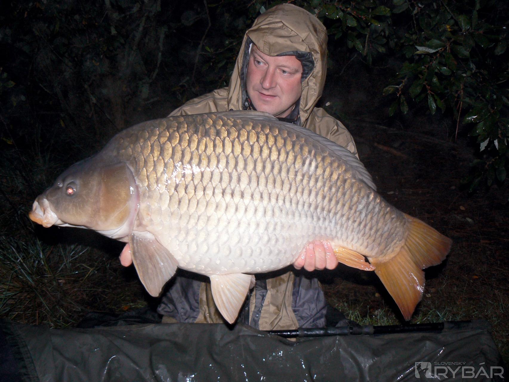 Nakoniec sme ho spoločne opatrne vložili do saku, a odvážili. Váha po odrátaní vážneho saku ukázala niečo cez 40 kg! Okamžite som volal Imreho, ktorý bol pri nás o 3 minúty /s ďalšími 15 rybármi, ktorým oznámil chytenie ryby okolo 40 kg cez vysielačku/ aj s certifikovanou váhou. Po odvážení na druhej certifikovanej váhe konštatoval: „Chlapi, rovných 40,10 kg!“ Všetci asi čakajú, že sa začalo nekonečné fotenie, pózovanie, kamery... „Nie!“ prikázal lovcovi, a oznámil, že fotiť sa môže len vo vode /16.10.2012!/ a ryba musela byť čím skôr pustená. Myslím, že tu sa začína profesionalita. Neskôr sme sa dozvedeli, že to bol 1. šupináč nad 40 kg chytený na RAINBOW a, samozrejme, aj to, že šťastný lovec nepokoril svetový rekord Markusa Pelzera, ktorému sa podarilo v Nemecku chytiť kapra s hmotnosťou 40,20 kg. Myslím však, že toto šťastného lovca mrzí najmenej! Uznaním však priamo na mieste lovu, za roky, ktoré venujeme kaprárčine, boli 2 fľaše originál šampanského od majiteľa Pascala, ktoré nám prišiel osobne odovzdať.