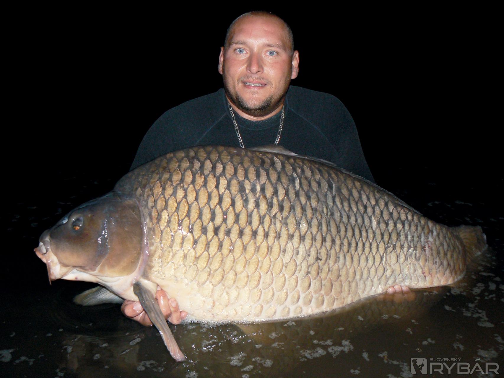Zásek nebol silný, keďže sme používali 300 g olová, ktoré zabezpečovali zásek ryby. Všetky ryby sme zdolávali z člna, a tak sme o 5 minút boli nad kaprom. Dušan ho začal zdolávať. V ďalších minútach nás niekoľkokrát s člnom pootáčal, potom sa mu ho podarilo dostať na hladinu. Naozaj perfektne ho podržal na podobratie. Po podobratí sme na chvíľu skameneli, ale stále sme kapra nevideli celého. Ozajstné prekvapenie nastalo, keď sme ho chceli v sieťke podberáka zdvihnúť - proste to nešlo.