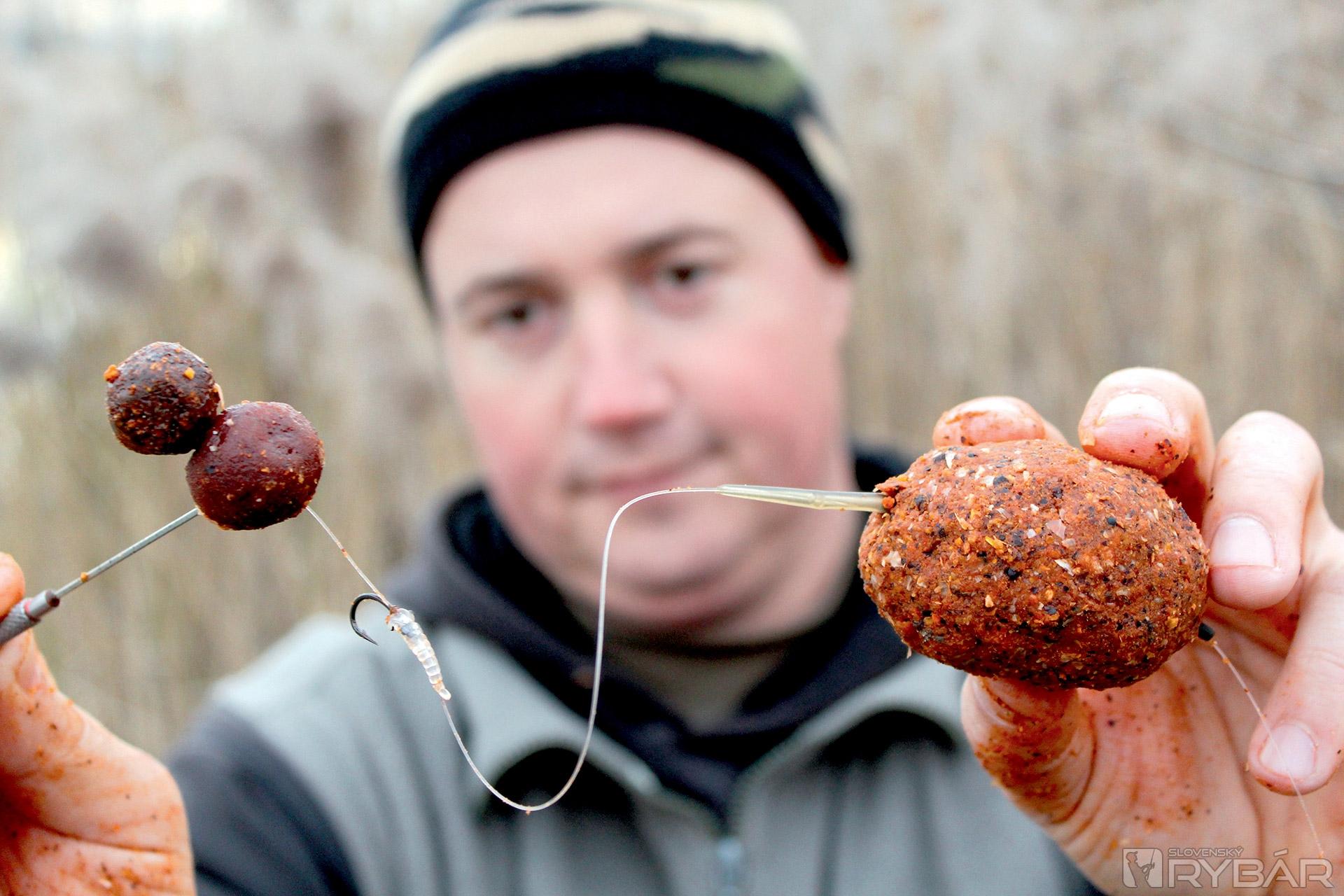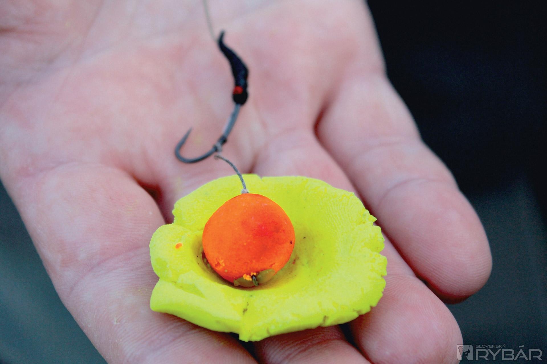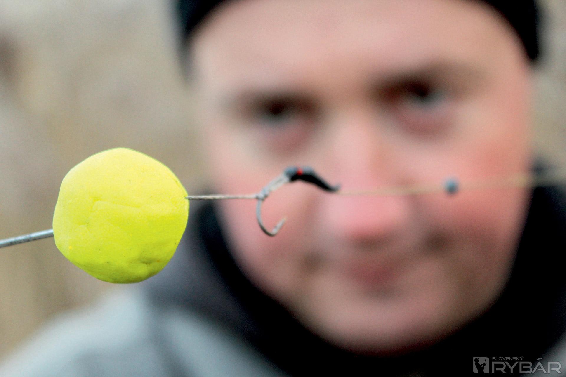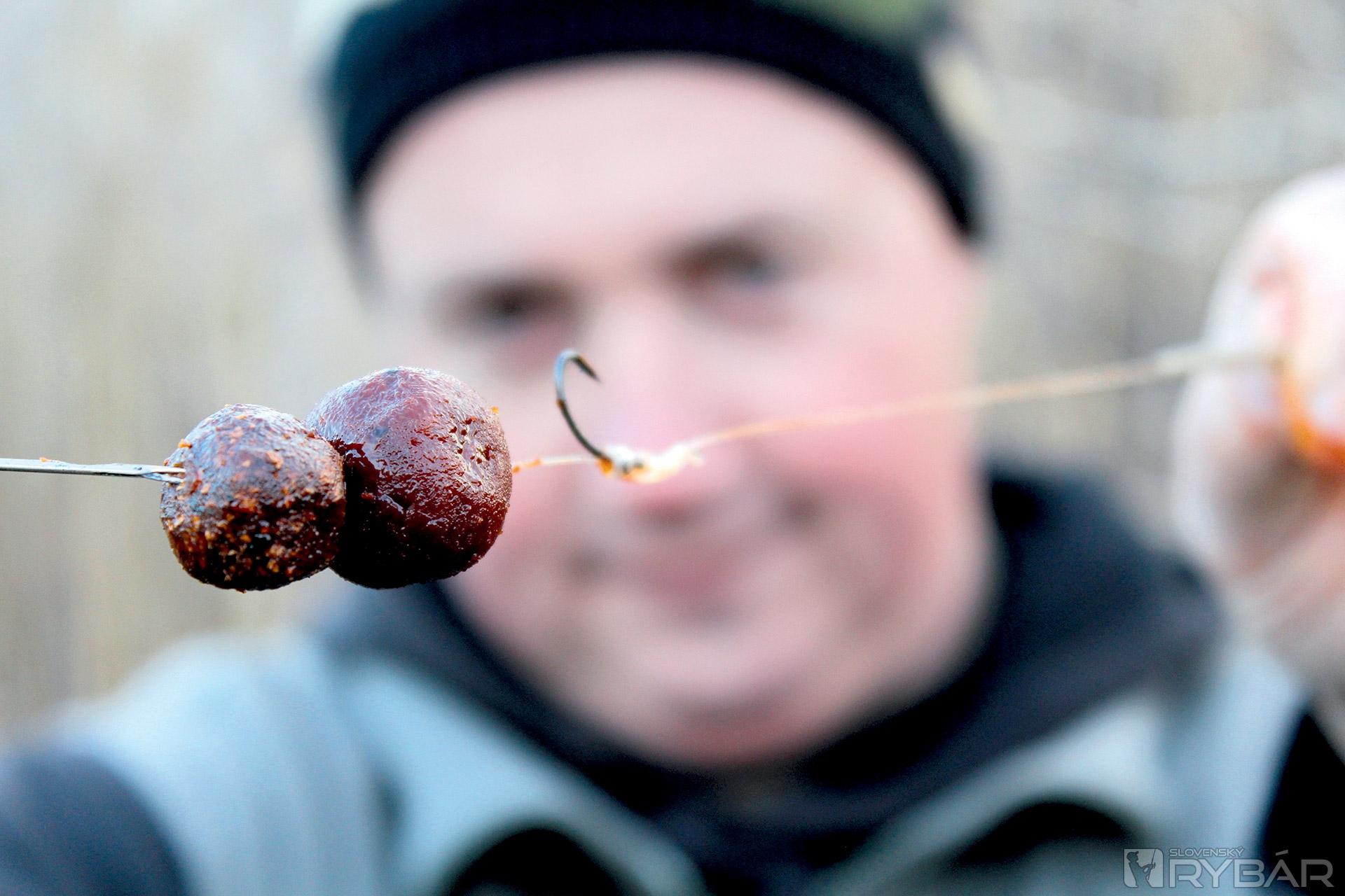 Na týchto hotových montážach sme spolu s chlapcami z NIKL Teamu a Carp´R´Us Teamu pracovali dosť dlho a do výroby sa pustili naozaj iba zostavy, ktorým maximálne dôverujem a viem ako dokážu chytať kapry. A aj preto teraz siaham po jednej z nich. Vyberám si hotovú montáž z jemného 15 lb fluorokarbónu Clearwater, uväzujem iba malú slučku na vlasovom prívese a napichujem potápavé Ready boilies KrillBerry v priemere 18 mm. Ako nadľahčenie pridávam ďalšiu budúcoročnú novinku – skvelý Korkový Pop-Up Kill Krill, ktorý je vyrobený presne rovnako ako klasický Readyboilies, plus je do neho pridaných zopár tajných ingrediencií a trocha drveného korku. Ja som si to doma ešte pred lovom celé namočil do fenomenálneho Krill Liquidu.
