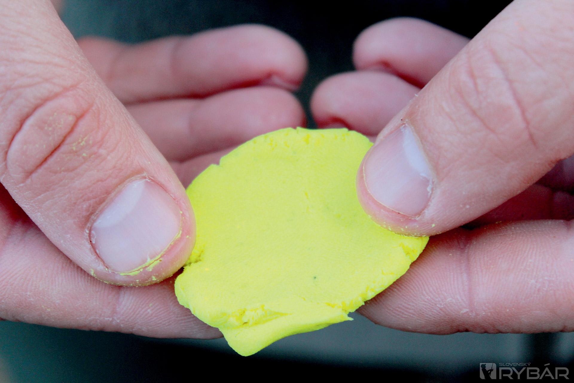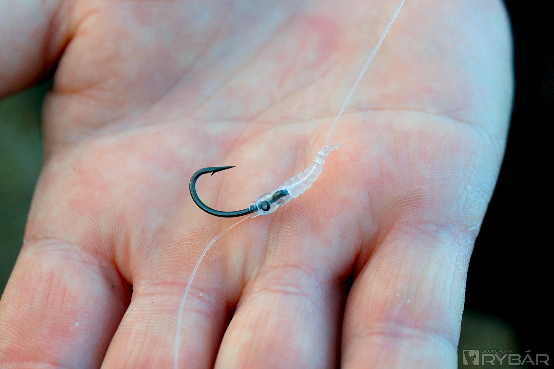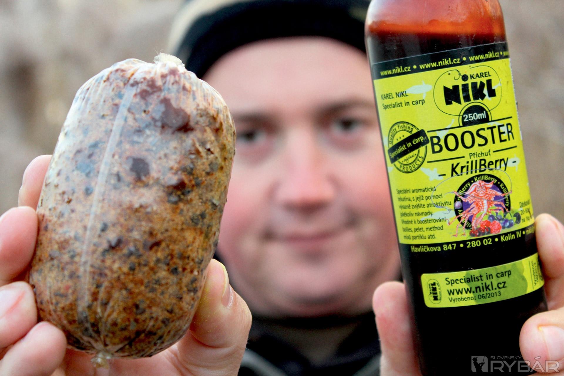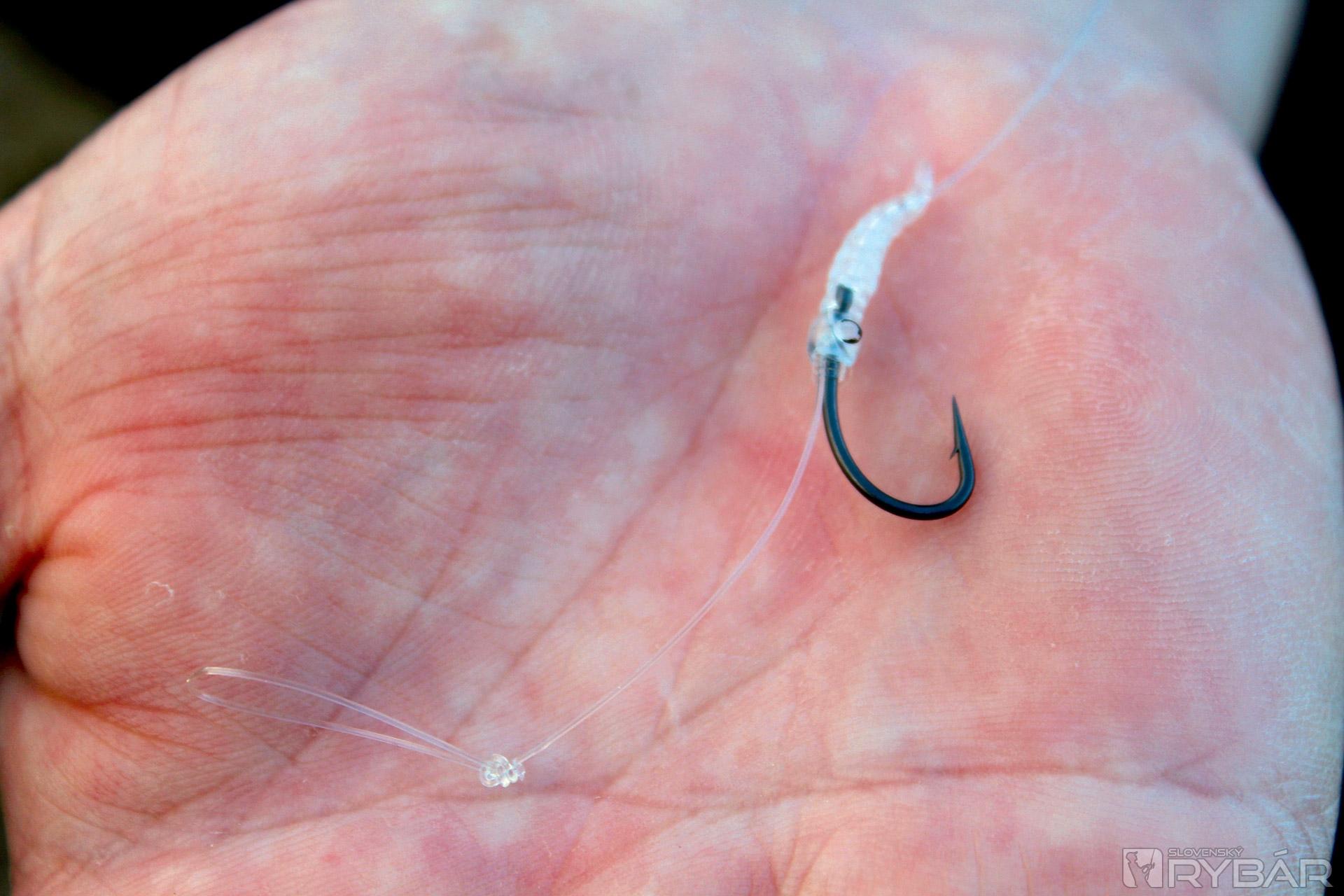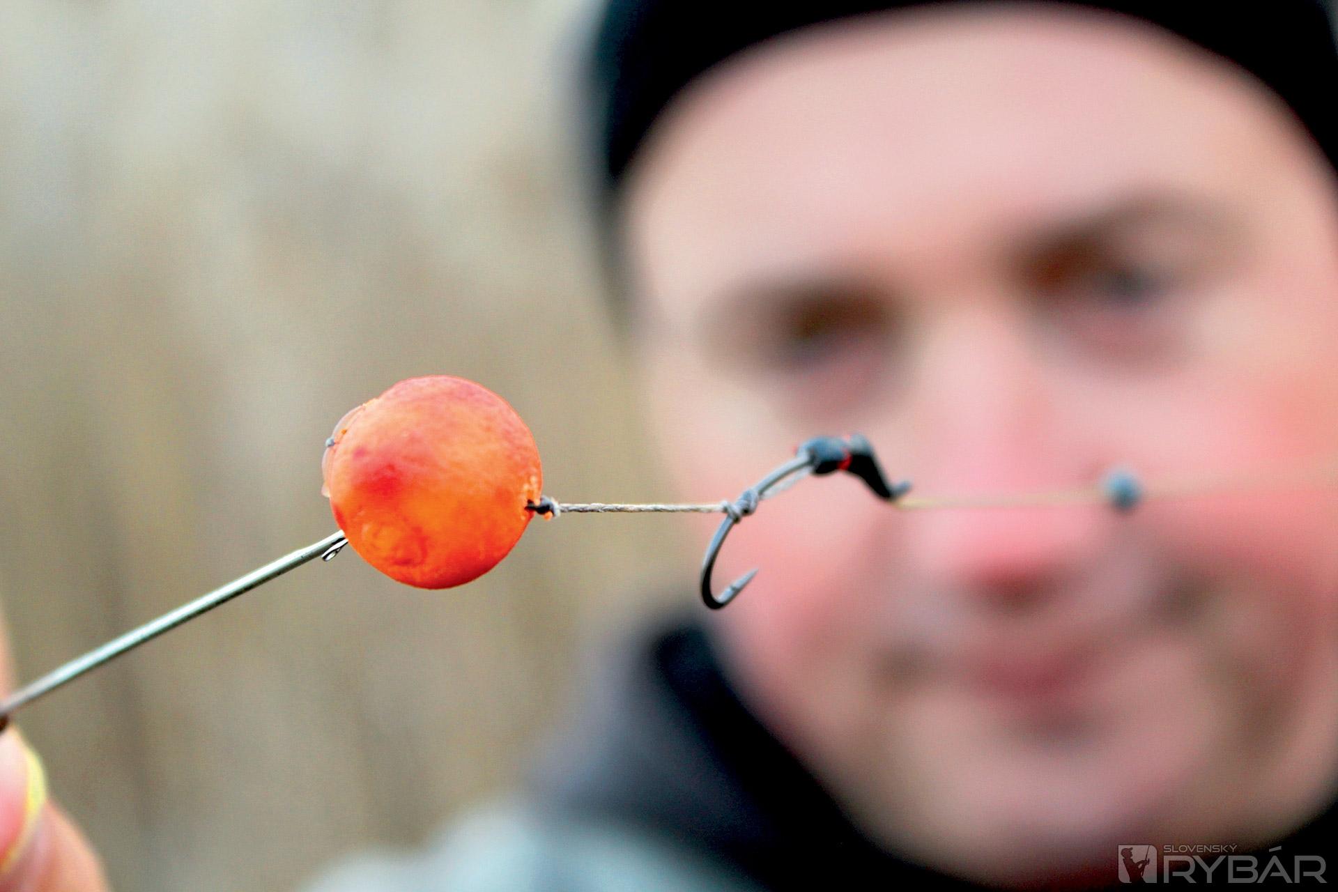 Na týchto hotových montážach sme spolu s chlapcami z NIKL Teamu a Carp´R´Us Teamu pracovali dosť dlho a do výroby sa pustili naozaj iba zostavy, ktorým maximálne dôverujem a viem ako dokážu chytať kapry. A aj preto teraz siaham po jednej z nich. Vyberám si hotovú montáž z jemného 15 lb fluorokarbónu Clearwater, uväzujem iba malú slučku na vlasovom prívese a napichujem potápavé Ready boilies KrillBerry v priemere 18 mm. Ako nadľahčenie pridávam ďalšiu budúcoročnú novinku – skvelý Korkový Pop-Up Kill Krill, ktorý je vyrobený presne rovnako ako klasický Readyboilies, plus je do neho pridaných zopár tajných ingrediencií a trocha drveného korku. Ja som si to doma ešte pred lovom celé namočil do fenomenálneho Krill Liquidu.