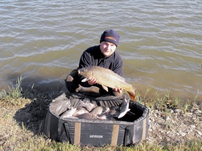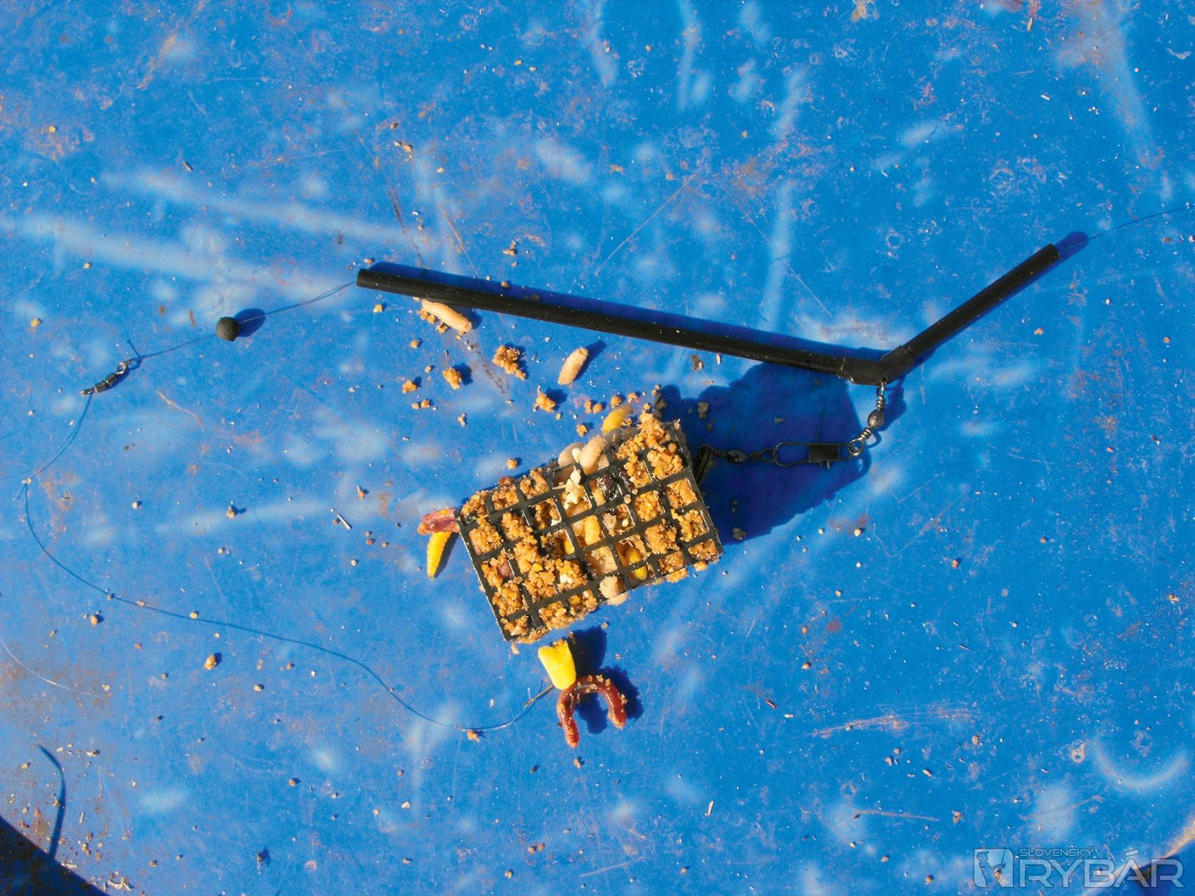 Z takto pripraveného krmiva som si spravil guľôčky a rukou ich nahádzal približne 20 metrov od brehu. Po zakŕmení som naplnil aj svoj košík, na háčik nastražil kostné červy, nahodil koncovú montáž a čakal na prvý záber. Prvé zábery som zaznamenal po 5 minútach a boli to hlavne malé plotice. Na háčik som skúšal dávať aj hnojáčiky, kukuričku, poprípade aj kombináciu týchto nástrah, ale prvého karasa som chytil až po hodine lovu a bolo to na kombináciu kukurice s kúskom hnojáčika.