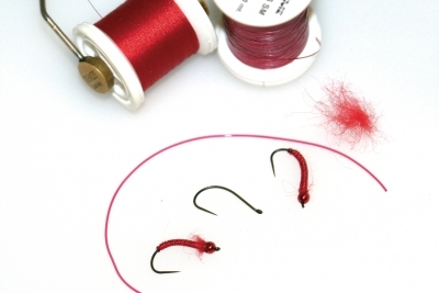 Ak sa rozhodnete pre cielený lov kaprov, uviažte mušku na poriadny hák z hrubého drôtu. Ja osobne veľmi rád viažem patentky tak, že najskôr telíčko podmotám lesklou červenou lametkou a až potom bodyglassom. Vo vodnom stĺpci vyzerá takéto telíčko veľmi lákavo, nakoľko občas „hodí“ odlesk, na ktorý ryby pozitívne reagujú. Okrem toho zvyknem do záhlavia mušky pridať zopár štetiniek červeného dabingu.