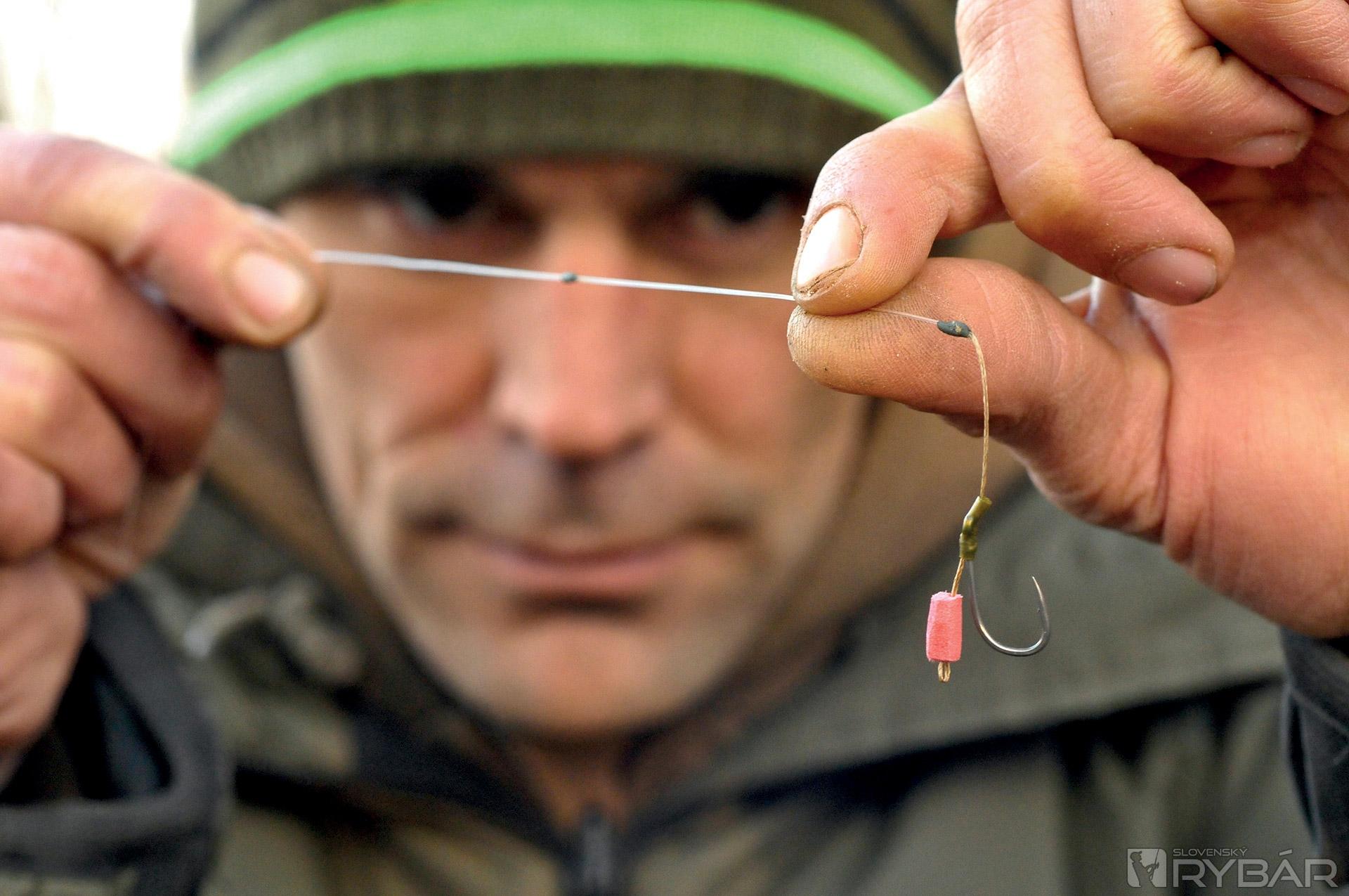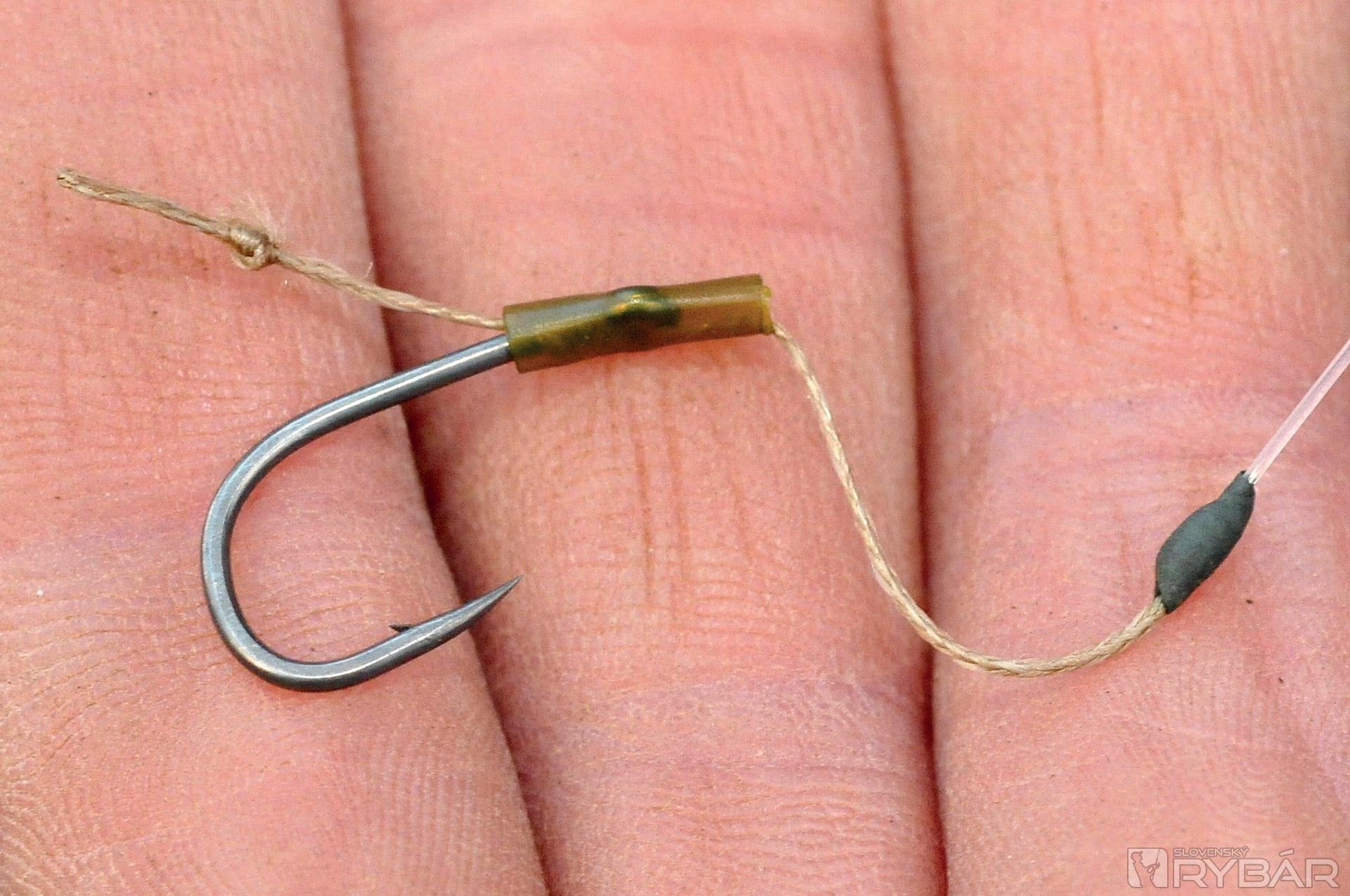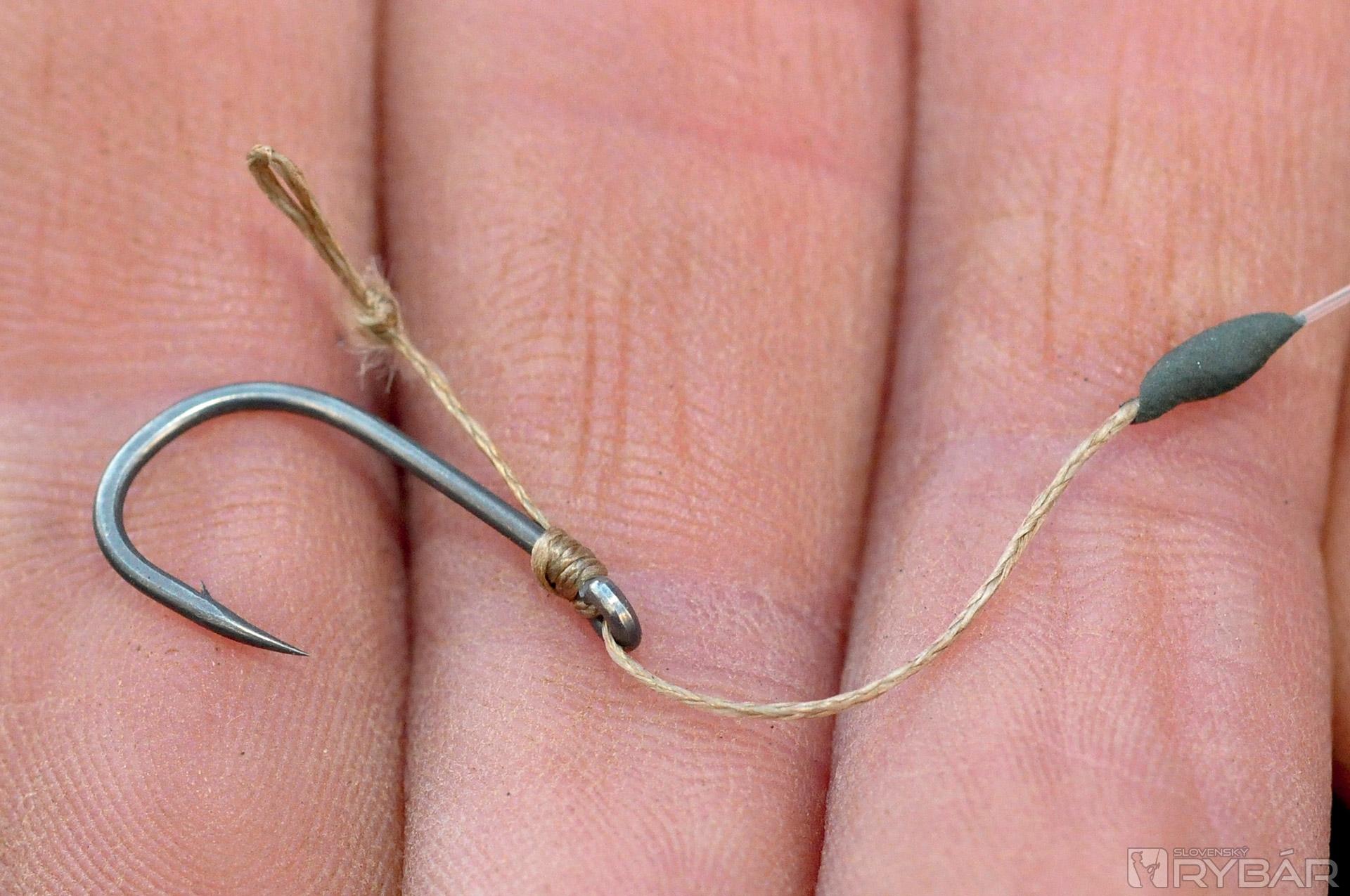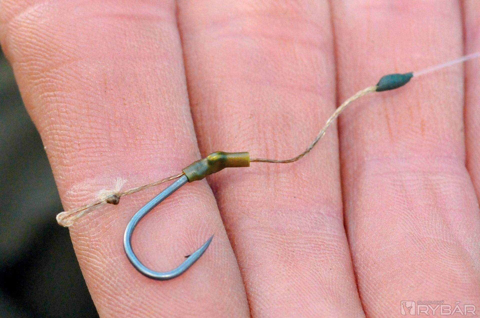 Myslím, že 15-18 cm koncový nadväzec z 15 lb materiálu IQ je ideálny. Pridaním plastického olova, alebo bročka zabezpečíte to, že nadväzec bude pekne kopírovať dno. Okrem toho sa bude nadväzec menej motať. Okrem toho, IQ je fluorokarbón, takže nadväzec bude takmer neviditeľný. Ďalšia vec, ktorú mám rád. Pri tomto nadväzci používam háčik Wide Gape veľ. 8, čo je, myslím, ideálna veľkosť. Veľa ráz som ulovil aj veľké ryby a tento háčik je skvelý, je subtílny, ale silný.