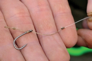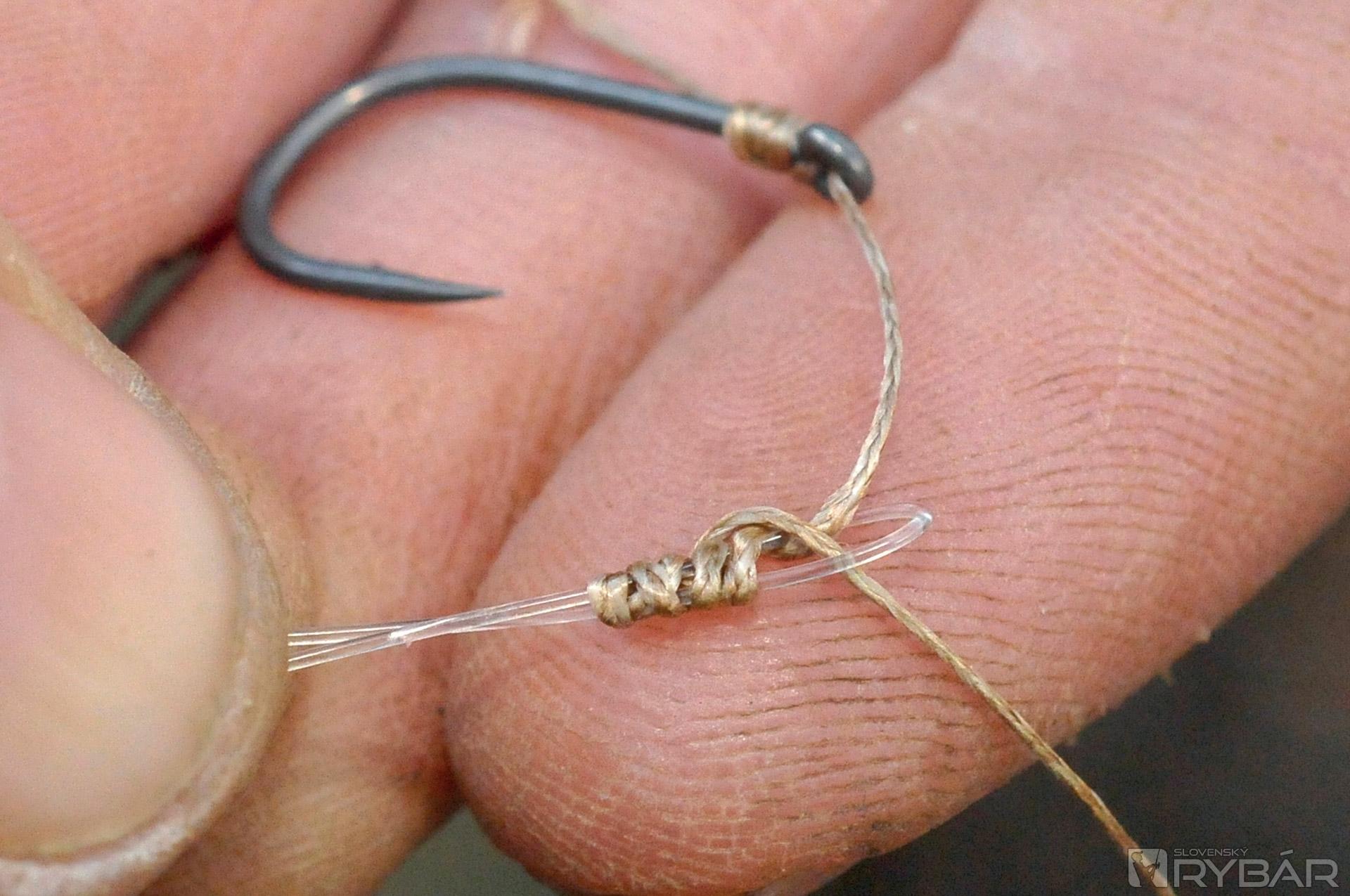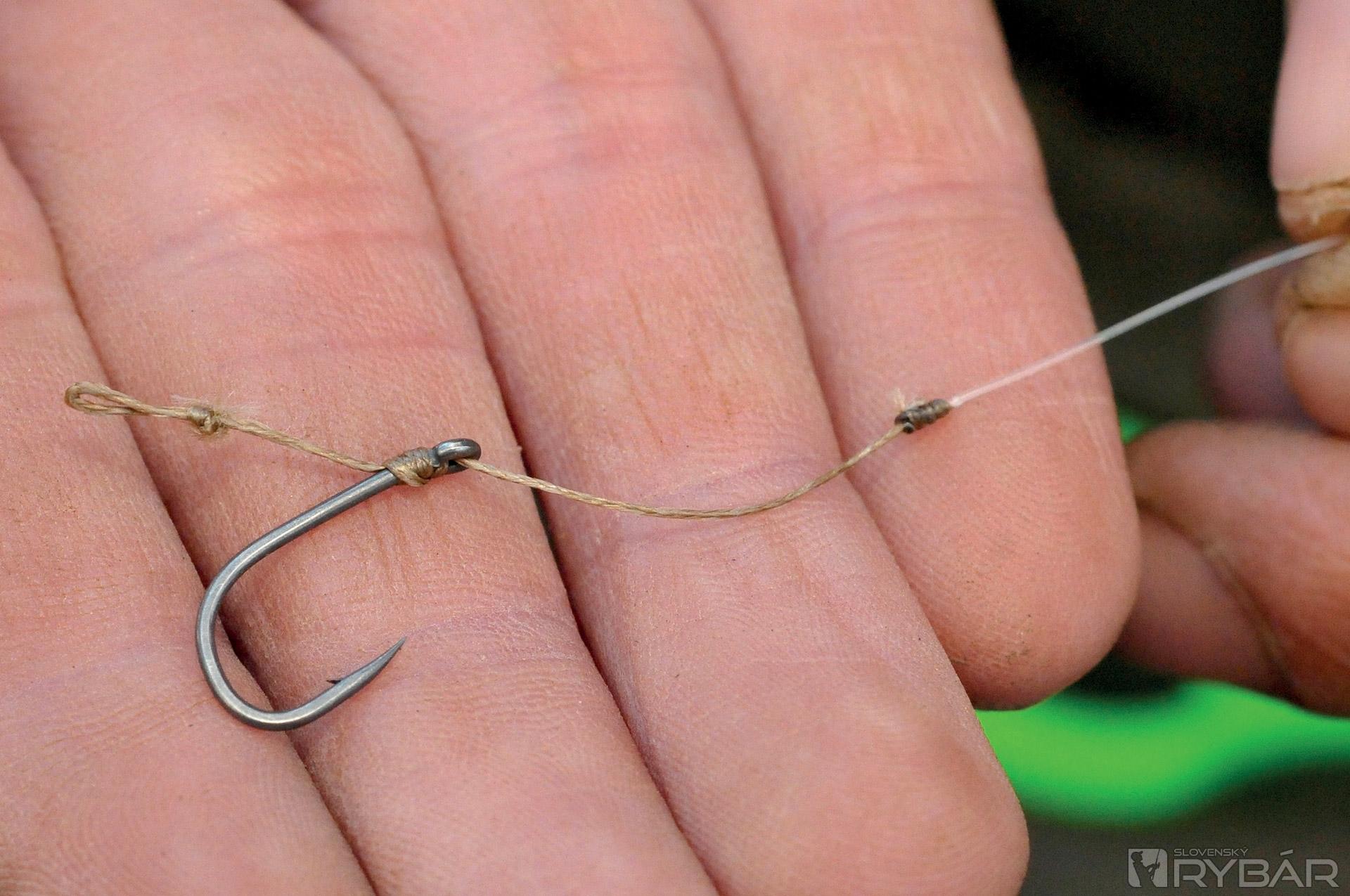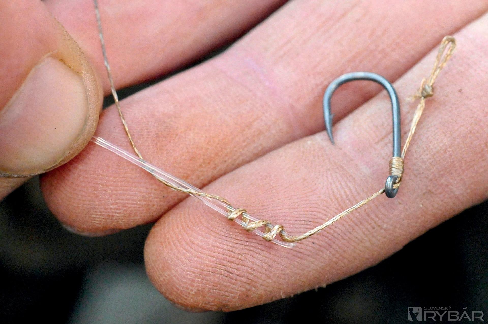 Myslím, že 15-18 cm koncový nadväzec z 15 lb materiálu IQ je ideálny. Pridaním plastického olova, alebo bročka zabezpečíte to, že nadväzec bude pekne kopírovať dno. Okrem toho sa bude nadväzec menej motať. Okrem toho, IQ je fluorokarbón, takže nadväzec bude takmer neviditeľný. Ďalšia vec, ktorú mám rád. Pri tomto nadväzci používam háčik Wide Gape veľ. 8, čo je, myslím, ideálna veľkosť. Veľa ráz som ulovil aj veľké ryby a tento háčik je skvelý, je subtílny, ale silný.