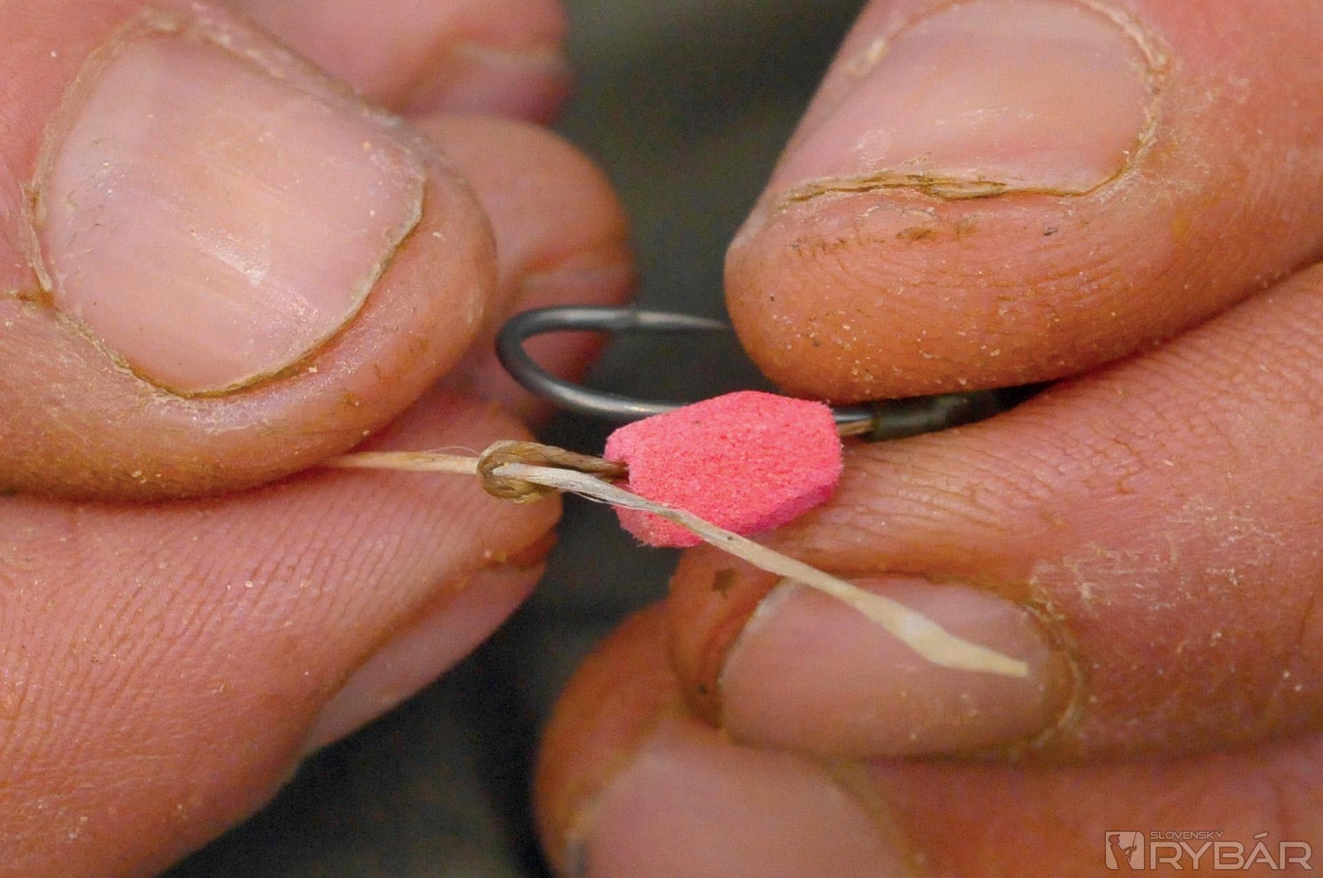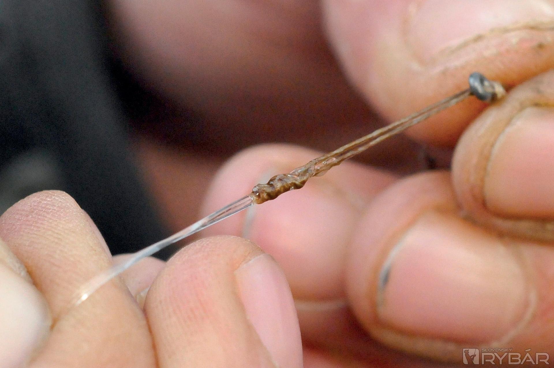 S vlasovým prívesom sa zvyknem pohrať a pridávam naň aj malý kúsok plávajúcej peny. Zabezpečuje to jemné položenie háčika, eliminuje hmotnosť samotných červov na vlase a spôsobuje ich prirodzený pohyb vo vode. Tento element „vzplývavosti“ drží červy ďalej od háčika, takže červy ho nemaskujú. Po tom, ako upevním červy, položím celý nadväzec do plytkej vody, aby som červy ochladil a zabezpečil ich pohyb. Takto znížim aj šancu, že mi zamotajú nadväzec, keď celý systém nahodím.