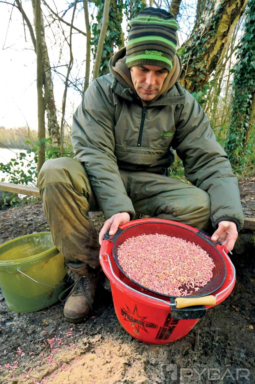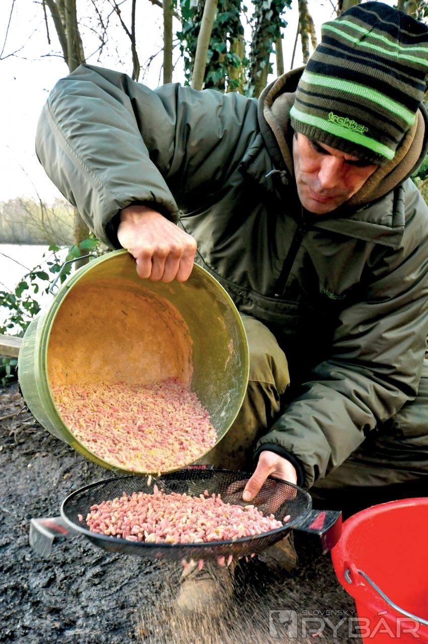 Vždy som kostnými červami kŕmil vo veľkých množstvách, ale prišiel som na to, že nemusím. Na jednom z revírov to takto robilo množstvo rybárov. Vozili im plné zavážacie loďky, ja som sa uspokojil aj s PVA pančuškou. Ak sa kapry aktívne kŕmia veľkým množstvom kostných červov, bez obáv sa budú zaujímať aj o menšie porcie. Keď prídem na miesto, úplne mi stačia tri litre červov.