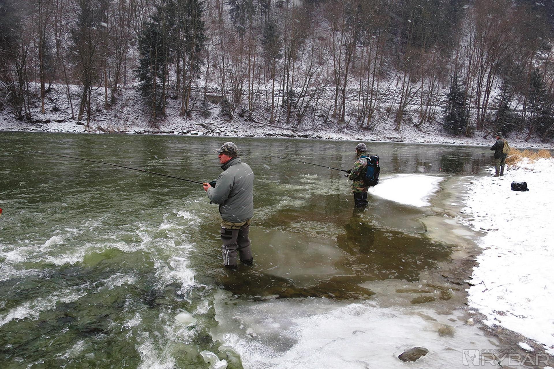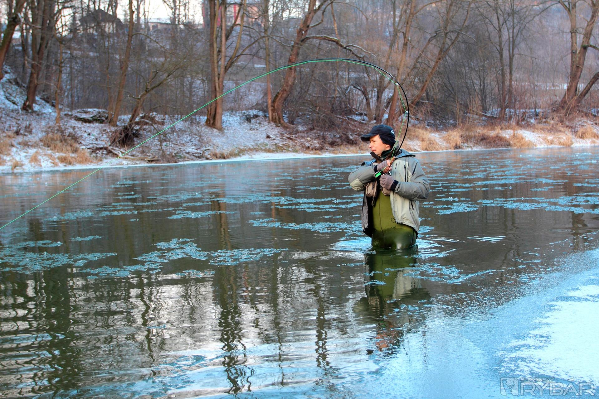 Nevadí, nevnímam čas, chlad ani mráz, len čaro zimnej rybačky. Ďalej usilovne odmrazujem mušky, šnúru, očká. Pár hodov a znova. Pomaly sa presúvam kúsok nižšie po prúde, aby som na mieste celkom nezamrzol. Jeden neopatrný krok a takmer plávam. Uf, až teraz mi skutočne prešiel mráz po chrbte. Žiadne zábery, ani len to neisté zaťukanie, akoby tu ryby ani neboli. Skúšam vymeniť mušky. Udicu kladiem na ľadový okraj, aby som mal ruky úplne voľné. Aj tak mi to trvá dlhé minúty. Chcem pokračovať v love, ale nejde to. Udica mi primrzla o ľad… Dvíha sa studený vietor. Znásobuje pocit chladu. Je najvyšší čas ísť domov. Aj láska k prírode, rybačke, k rieke musí mať predsa svoje hranice. Alebo je to už fanatizmus?