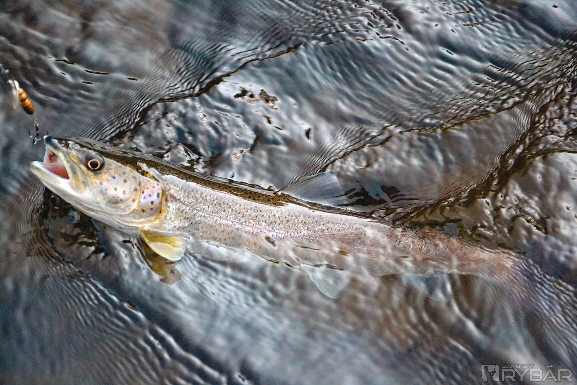 V toku sa šikmo láme dlhá štrková lavica, pod ňou pení voda a začína sa hlbočina. Dlhá je hádam aj 30 metrov. Začínam nahadzovať rotačku, kaskádu prechytávam meter po metri. Som bez záberu. Postupujem nižšie ku bralu, ryby žiadne. Uvažujem, prečo tu už pár rokov rybky nejako neberú. Otočím sa hlbočine chrbtom a rotačku nahodím do rýchlej plytkej vody k druhému brehu. Špičku prúta dám hore a začínam nástrahu rýchlo sťahovať.