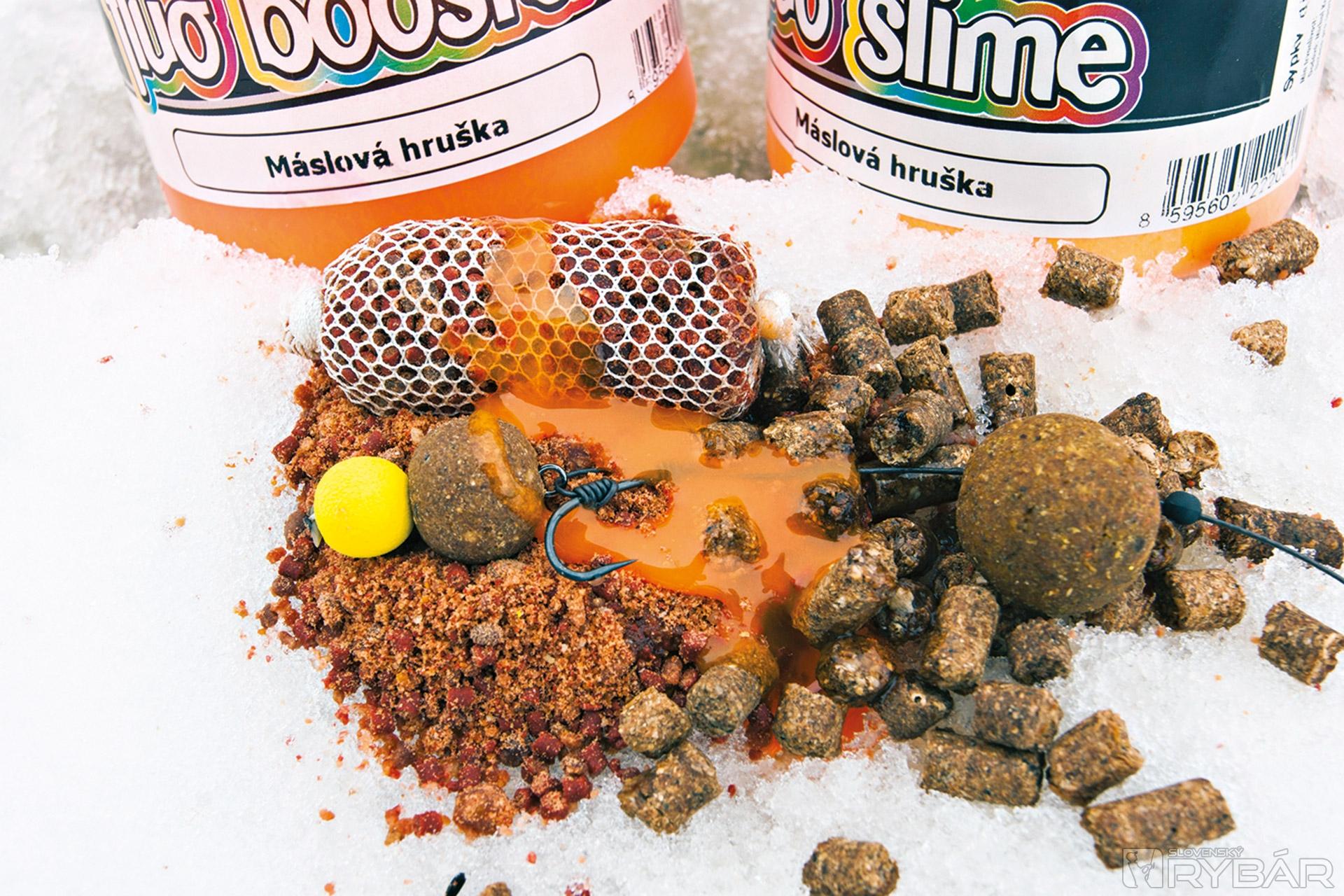 Ak však máte málo času, predsa len sa oplatí nástrahu nejako zatraktívniť. Skvelým variantom je obaľovacie plávajúce fluo cesto. Dokonca ho môžete nastražiť samostatne, napríklad na špirálku. Druhým tipom je sypký obaľovací Fluo slime, alebo jeho menší brat Feeder slime. Výrazná farba mnohokrát rozhoduje a mäkký povrch nástrahy je v chladnej vode výhodou. Na zvýraznenie malých nástrah je tiež výborný Feeder dip či Fluo plazma, vďaka ktorým nástraha vypúšťa voňavú farebnú stopu. Nie je to len pre lovca zameraného čisto na feeder, ale celoročne pre rýchle chytanie kaprov, pretekársky lov, alebo práve chladné obdobie, keď potrebujete niečo menšie a vysoko atraktívne. Keď už sme pri tom feedri, aj to môže byť cesta, ako počas krátkej vychádzky dosiahnuť aspoň nejaký kontakt s rybou. Jemnejšie náčinie, tenšie vlasce a predovšetkým jemná špička, ktorá zaznamená akýkoľvek kontakt s nástrahou, majú bezpochyby výhodu. Keď k tomu použijete method feedrové kŕmidlo so stlačenými mikro peletami, alebo feedrové zmesi a pod háčik dáte malú plávajúcu nástrahu, šanca na úlovok prudko stúpa. To však neznamená, že ortodoxní lovci veľkých kaprov musia v tejto dobe presedlať na chvejivé špičky. Dokonca ani nemusia nijako zásadne zjemňovať, prezbrojovať na mikro háčiky a používať ultra jemné vlasce a nadväzce. Dobre vybrané a vopred prekŕmené zimné miesto môže niekedy znamenať úspešnejšiu výpravu ako v plnej sezóne. Len sa vám musí zísť dostatok priaznivých okolností. O to radostnejšie to potom však býva. Nachytať v máji alebo v septembri nie je ničím výnimočným, hoci aj na to potrebujete um a šťastie. Ale nachytať v januári či februári? To je podobný zážitok, ako keď váš národný tím vyhrá majstrovstvá sveta. Proste euforická radosť, ktorá hreje pri srdci, a na ktorú len tak nezabudnete.