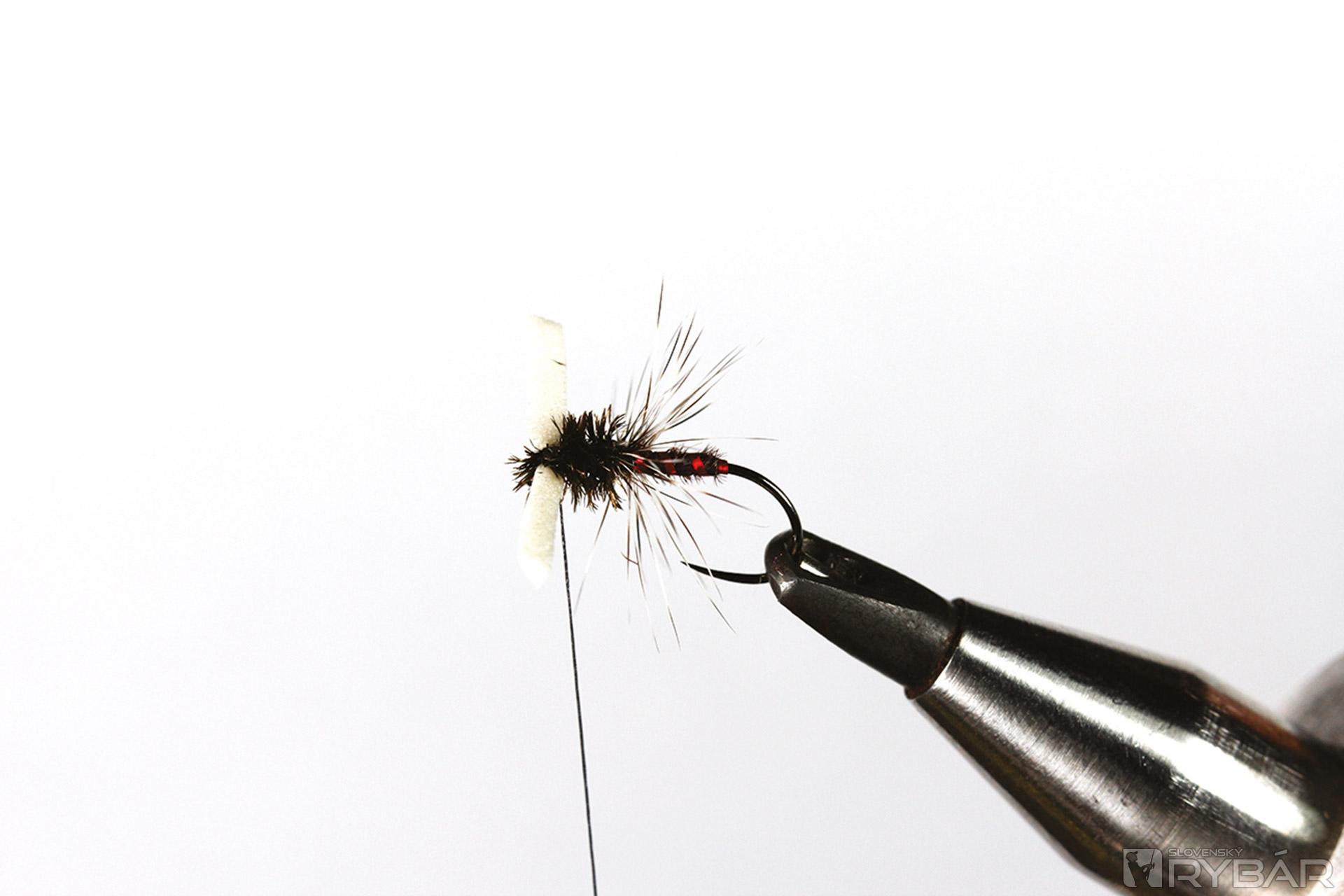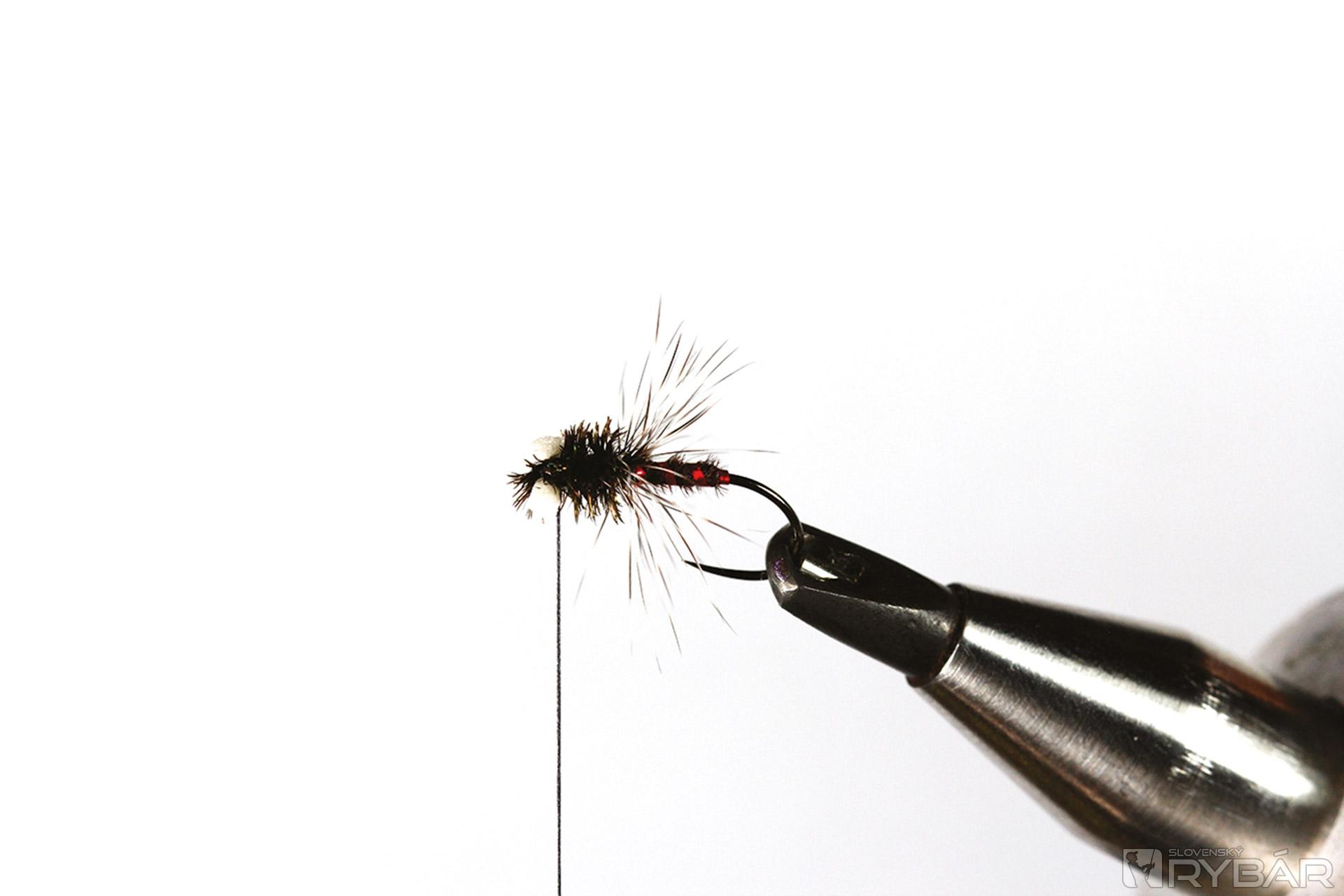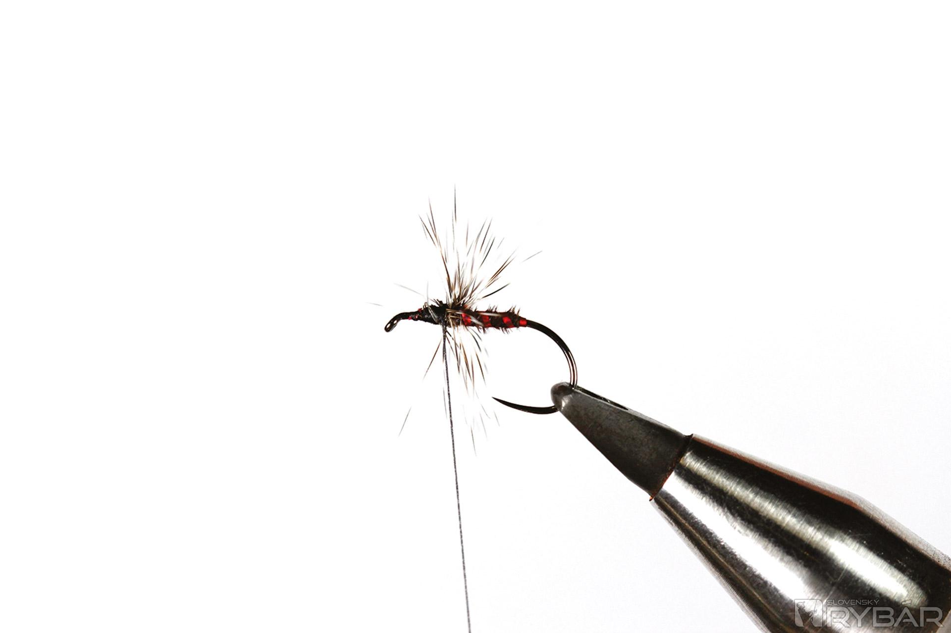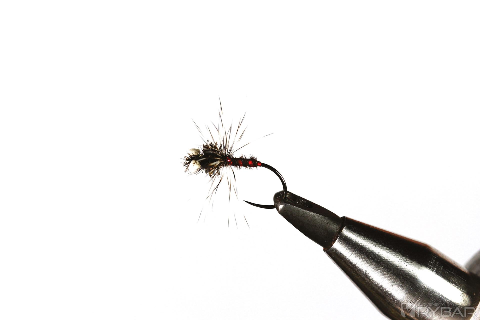 Muška imituje rodiaceho sa pakomára. Zaujímavý vzor, na ktorom ihneď zaujmú výrazné „oči“ zhotovené z polycelónu. Majú napodobňovať zárodky dýchacích orgánov. S touto muškou zhotovenou vo veľmi malých veľkostiach určite uspejete aj na konci lipňovej sezóny, keď na chvíľu vykukne slnko a pri brehu to trochu ožije. Určite ste si všimli, že aj v decembri lipne na sucho, alebo tesne pod hladinou lovia pakomáre.