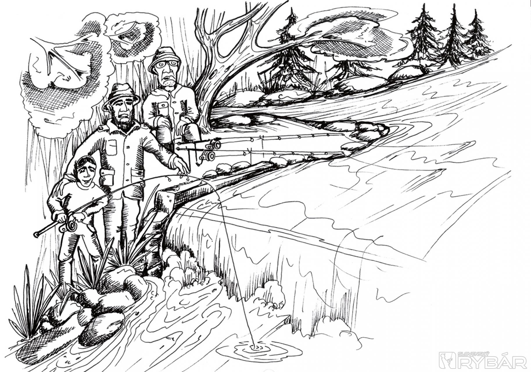 Našľapujem pomaly a ticho. Rozhliadam sa okolo seba. Veverička skáče nado mnou a pod skalou vyvádzajú zajace a ten vzácny okamih umocňuje krik volavky, ktorá ma všetkým zvieratám prezradila. Už ju vidím! Dole v údolí sa kľukatí rieka. Je o dosť menej vody, ale na svojom pôvabe rozhodne nestratila. Je neskutočná a krásne vonia. Sadám si na kameň a otváram škatuľku s hnojákmi. Tie sú najlepšie, rybám chutia najviac. Púšťam ich po prúde a občas ich ochutná malá ostračka. Majú sotva pätnásť centimetrov, ale je s nimi zábava. Sú ako rytieri. Bojujú o kus dážďovky do roztrhania tela. Za kameňom som zazrel malého potočáka, ktorý dážďovku minul. Prechádzam ďalej po prúde dolu, a tak vyzerám nádejné tône. Tam pod brehom nejaká ryba zobrala hmyz z hladiny. Snažím sa nájsť ten najlepší prúd, ktorý by doniesol môj plavák presne do tých miest. Podarilo sa, prvý potočák. Ako krásne ho príroda vyfarbila, je to naozajstná čarodejnica. Je mi krásne. Tak krásne, ako mi už dlho nebolo. Odpočívam chvíľku na pni a zobem si lesné maliny. Slnko prehrieva prírodu, čo najviac oceňuje malá jašterica, ktorá práve vylieza zo svojej štrbiny. Prechádzam ďalej do hlbších miest. Na obzore už vidím malý brod, cez ktorý sa brodia deti na druhú stranu. Tam to poznám naspamäť. Vyzerá to tam rovnako ako predtým, len vo vode bolo viac rýb. Pamätám si, ako by to bolo dnes, keď som vyrazil s dedom na belice. Pod brodom ich boli nekonečné zástupy. Teraz ich tak vyzerám po pár kusoch. Za mnou je náhon, kam sme vždy chodili na úhora. Pamätám si, že tam bolo zakázané chytať, ale nikdy som si neodpustil tam spustiť dážďovku. Nemohol som inak a plaváčik mieri do úhorej kuchyne. Moje srdce hlasno búši, ako plavák prechádza tesne pod podmytým brehom. Nič sa nezmenilo, je to stále úhorí brloh.