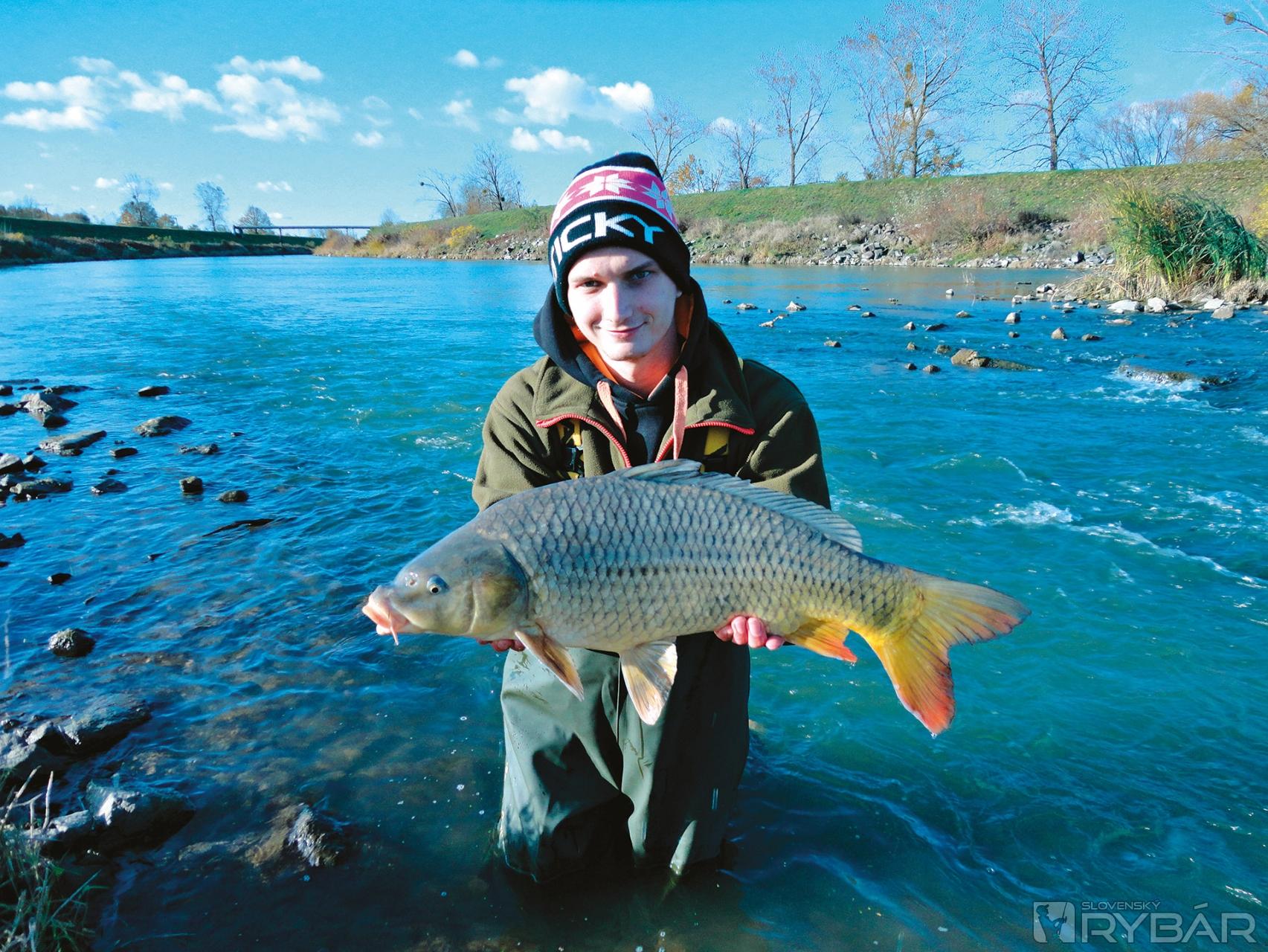 Zdolávanie si vychutnávam plnými dúškami. Nakoniec všetko dobre končí a do siete podberáka dostávam prvého jesenného riečneho pretekára. Silné svalnaté telo je priam stavané do takýchto podmienok. Kapor má jedinečnú jazvu pri chvoste, a tak nebude problém ho spoznať pri prípadnom ďalšom ulovení. Malá nástraha zafungovala a čoskoro montáž letí naspäť do vody. O hodinu sa ozýva ten istý prút. Z vody dostávam o kúsok menšieho športovca. Vau! Dve krásne ryby za taký krátky čas. Som maximálne spokojný. V hlave si už plánujem ďalšiu vychádzku. Netrvalo to dlho a o dva dni som na mieste činu. Situácia sa však zmenila. Za 6 hodín nemám ani záber. Veď nie vždy sú „Vianoce“. Začínam baliť, prúty skladám z rodpodu len na kameň, že čo keby náhodou. Počas balenia stojanu neveriacky pozerám na ľavý prút, ktorý pomaly ale isto letí do vody. Do sekundy ho chytám a zdolávam poludňáčka. Obrovská radosť, že to všetko úsilie a čakanie malo zmysel. Po pár pokusoch sa mi darí kapra dostať do podberáka. Ďalší nízky dlhý športovec okolo 6 kg. Vypínam ho a s pokojom na duši idem domov.