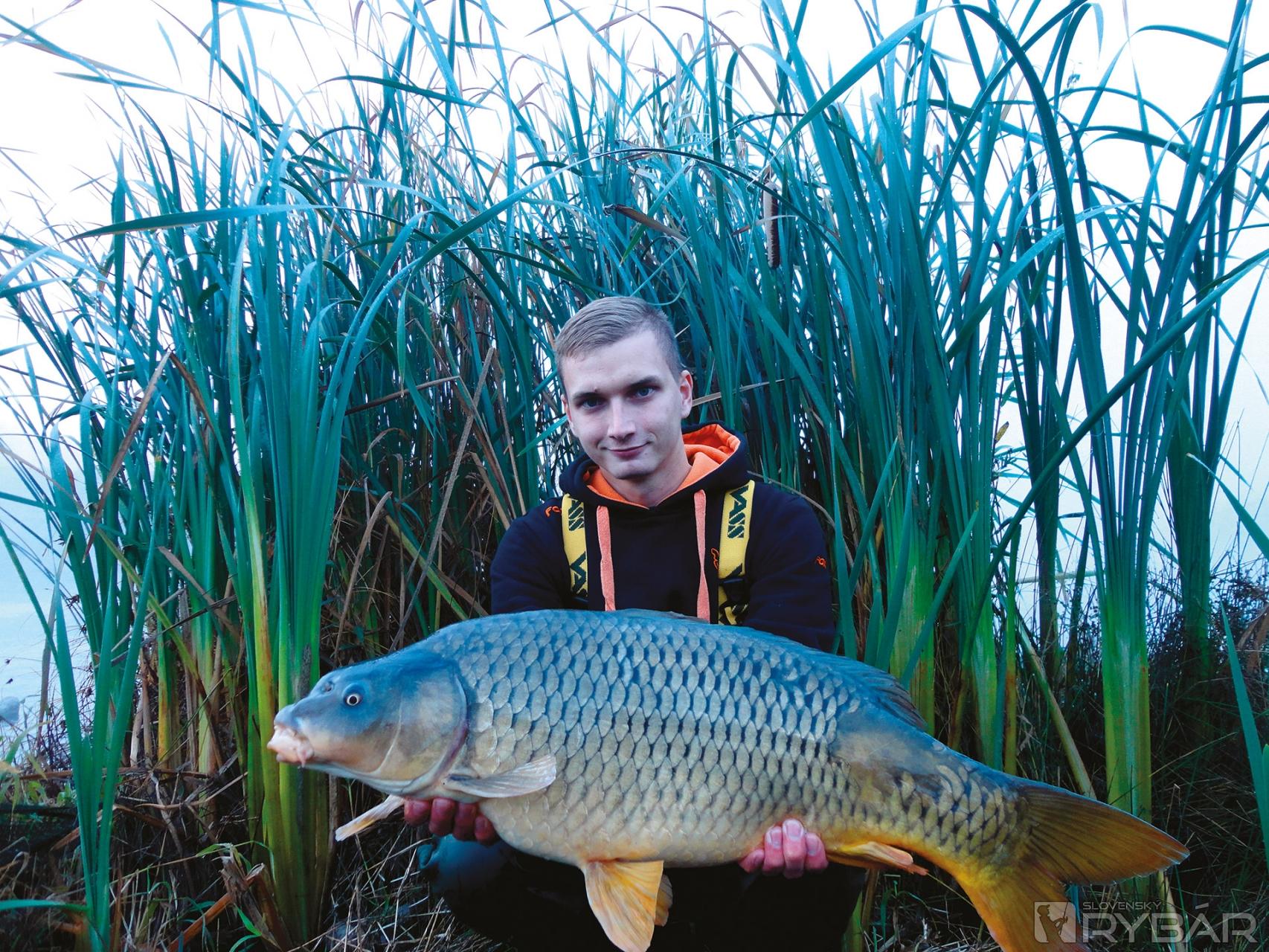 Poslednú výpravu som si naplánoval na koniec októbra. Nakoniec sa z toho vykľuli 2 párhodinové vychádzky. Prvú som absolvoval s kamarátom Maťom, ktorý túžil zdolať aspoň jedného kapra nad 5 kg. Jesenné počasie bolo naozaj premenlivé. Vystriedal sa silný vietor, slnko, oblačno, sneh a dokonca aj ľadovec. Báli sme sa, aký vplyv to bude mať na aktivitu rýb. Voda už bola chladná a studený vietor ju neustále ochladzoval. Nakoniec sme urobili tri zábery. Ja som mal nízkeho šupináča, Maťo jednookého šupináča, ktorý nám zamával pred podberákom a druhého dokonalého koženého lysca so zimnými farbami. Cieľ bol splnený a mňa čakala ešte posledná akcia na túto vodu. Druhá pár hodinovka sa niesla v lepšom počasí, avšak už pod bodom mrazu. Pridal sa ku mne aj Jakub. Zvolil som miesto, ktorému som asi najviac veril. Jama, ktorá mi už priniesla pár pekných rýb. Bude to znieť strašne jednoducho. Prišiel som, chytil som troch kaprov a odišiel domov. K vode sme došli hneď po rozvidnení. Nahodili sme prúty a čakali. O pár minút sa ozýva môj ľavý prút. Už klasicky nasleduje dlhé preťahovanie o každý meter. Keď sa pred podberákom ukazuje dlhý tmavý kapor, modlím sa, aby sa nič nepokazilo. Všetko sa dobre končí a ja sa môžem odfotografovať so zdravou bojovnou rybou. Keďže vonku mrzlo, bolo potrebné kapra na podložke neustále polievať.