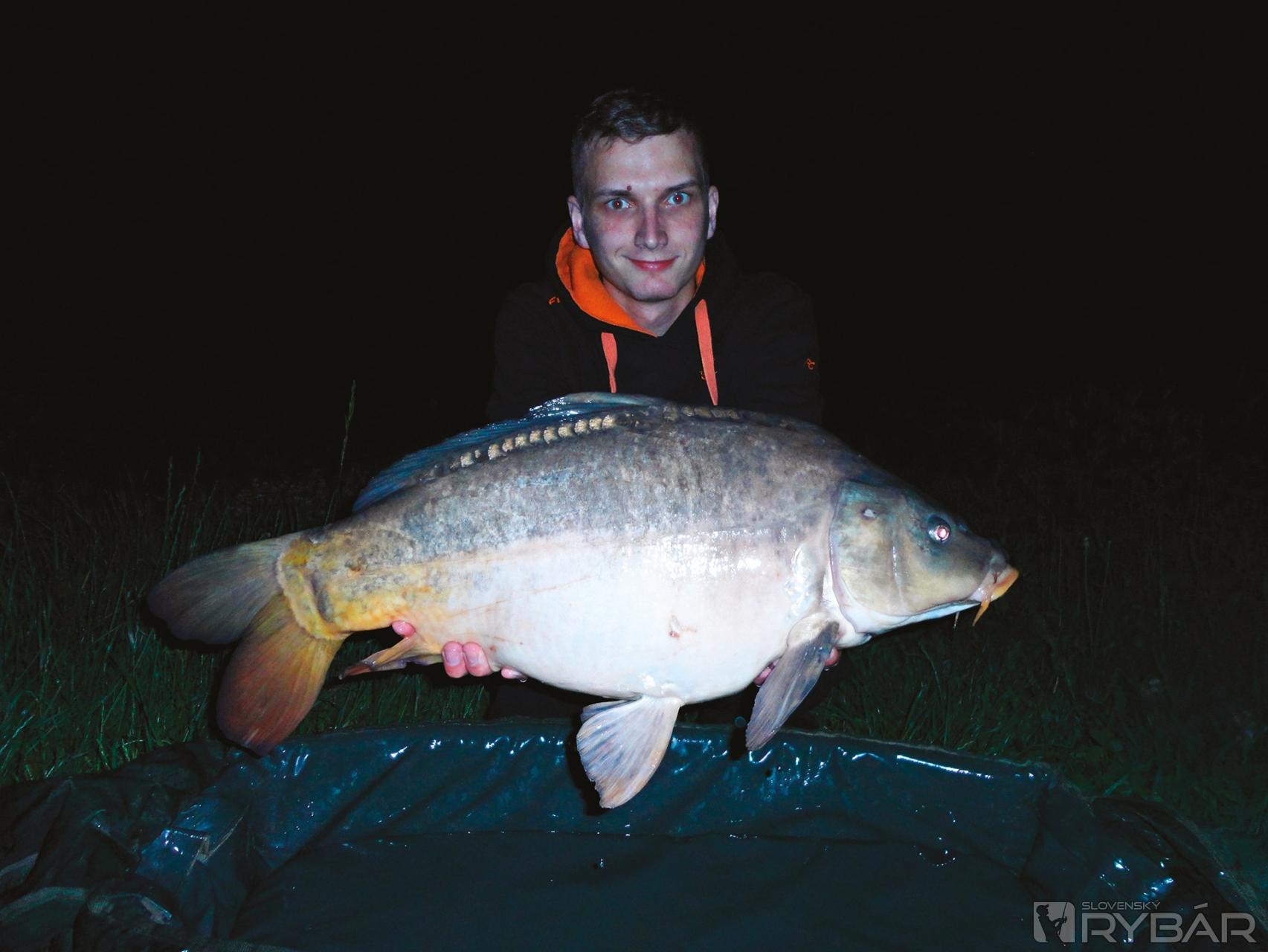 Riečni bojovníci mi nedali spať a o pár dní som sa musel vrátiť k tejto vode. Ako som mal v pláne, postúpil som ešte vyššie proti prúdu. Miesta pod vodným dielom vyzerali veľmi sľubne, avšak trvalo mi pár nahodení, kým som zistil, kde nahodiť montáž, aby nespadla medzi veľké balvany. Pre svoj lov som si vyčlenil na vode asi 7x5 m, kde mi montáž dopadla na normálne dno. Prúd tu bol veľmi silný. Tesne pred zotmením nahadzujem prúty, pridávam pár guľôčok na aj nad lovné miesto a čakám. Tri hodiny sa nedialo vôbec nič. Asi hodinu pred polnocou dostávam prvý záber. Aj 60 cm kapor má neskutočne razantný prvý výpad. O chvíľu sa mi už trepoce na podložke a vzápätí už aj pláva naspať. Do pár minút mám ďalší záber a zdolávam na vlas podobného kapra. Ryby zrejme dobehli na moje kŕmne miesto. Samozrejme, že po každej rybe trochu dokrmujem. Posledný záber stojí fakt za to. Hneď od prvej chvíle mi je jasné, že mám na prúte lepšieho súpera. Rovnaký zápas ako s minulým vysokým šupíkom. Po dlhých minútach preťahovania sa v prúde víťazím ja. Na podložke končí mladší súrodenec kapra z minulej rybačky. Aký bol dlhý, taký bol vysoký. Úplne jedinečná ryba, ktorá má potenciál vyrásť do slušnej hmotnosti. Uznajte, pri 67 cm presahovať 7 kg hranicu je pekné. Zaujímavé je, že všetky tri ryby prišli z jedného rovnakého miesta. Môj čas na lov vypršal. Stalking má svoje čaro, a aj keď nevyťahujem z vody obrovské ryby, schuti si viem úspešne zachytať. Touto rybačkou som zakončil leto na tejto vode.