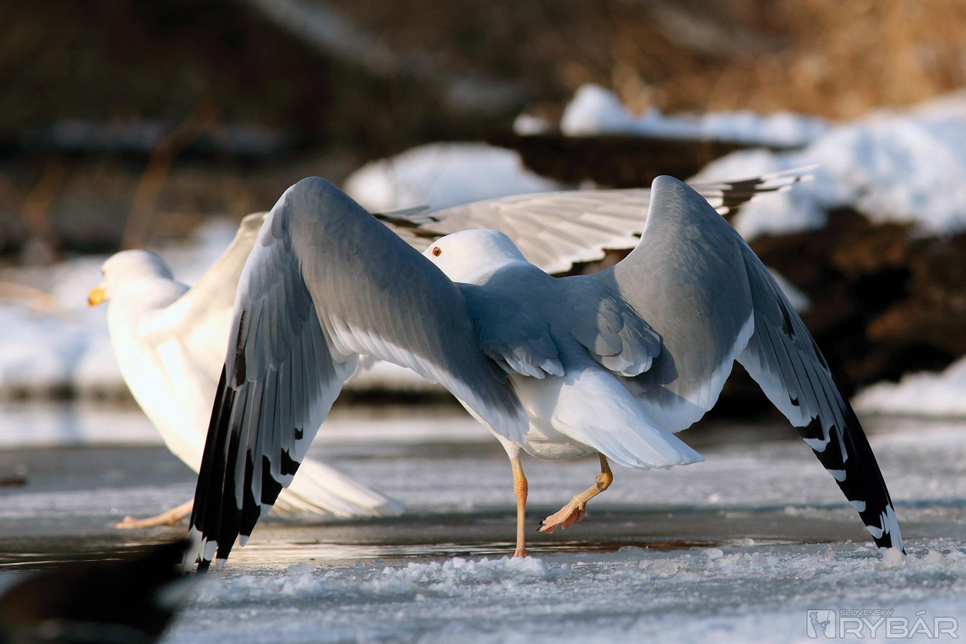 Vzápätí prilieta ďalšia čajka. Tiež by sa chcela priživiť.