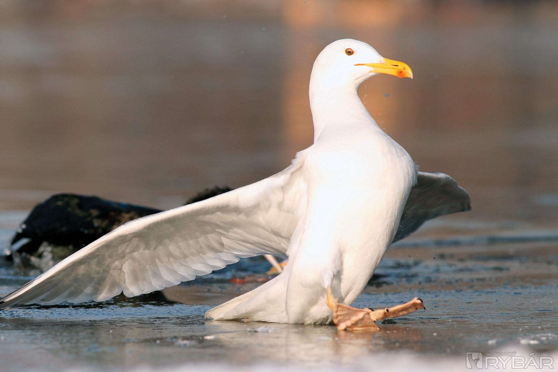 Čajka to tiež nevzdáva. Ďalej zostáva na ľadovom okraji a snaží sa uloviť nejakú korisť. Zdá sa, že ju pod hladinou niečo zaujalo.