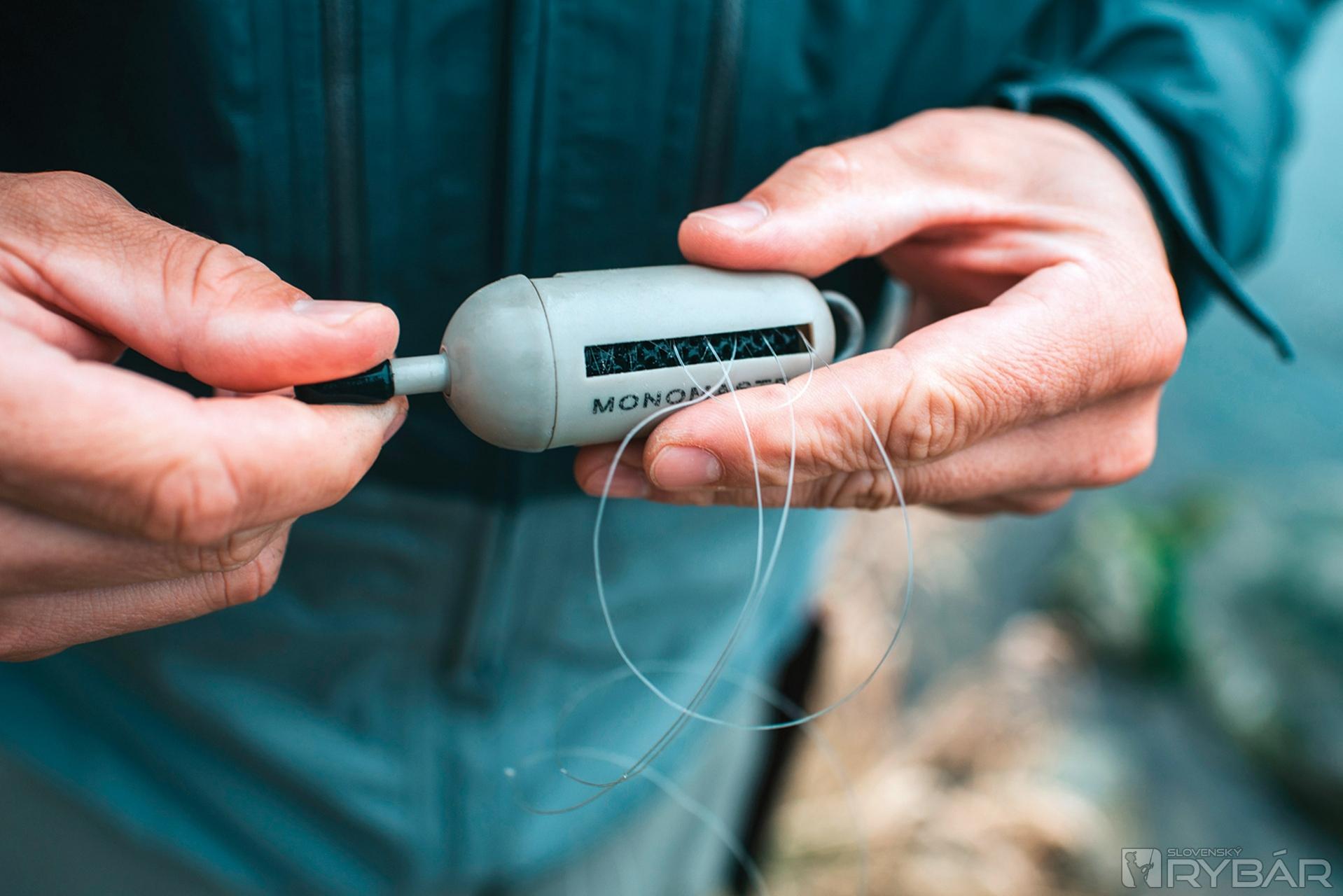 Na trhu je hromada rybárskych pomôcok a rôznych zlepšovákov. No za posledné roky patrí medzi mojich TOP favoritov práve Monomaster – zásobník použitých silónových nadväzcov. Poznáte to, ste zabrodený vo vode, potrebujete si pripraviť nový nadväzec, a tak starý odstrihnete preč. Čo s použitým silónom? Keď je niekto totálny pokrytec, hodí ho do vody, však čo, voda ho odplaví, nie je to ani vidieť, nič sa nedeje. No takýmto konaním môžem znepríjemniť život okolo žijúcich zvierat, napríklad vtákov, ktoré sa do starého silónu môžu zamotať. Alebo sa na to môžeme pozrieť ešte globálnejšie. Výskumy totiž dokázali, že mikroplasty, ktoré sa dostali do oceánov sa nám vracajú späť na tanier napríklad v rybách či v morskej soli.
