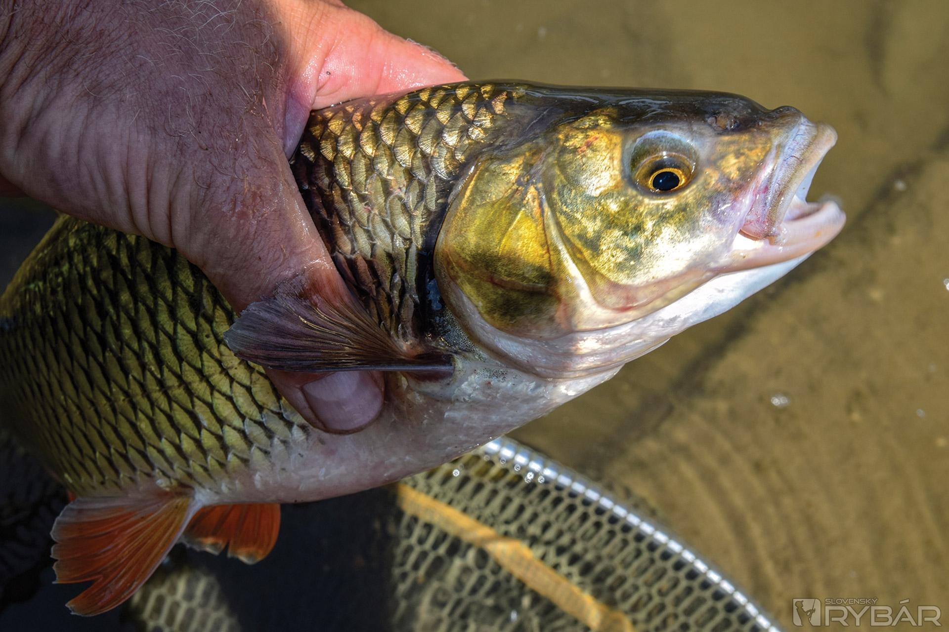 Po zaseknutí ryba vyráža z miesta po prúde dolu a nemieni sa len tak zastaviť. Dá mi naozaj dosť práce si s ňou poradiť a musím povedať, že na jemnom nadväzci ju zvládam skôr so šťastím než s rozumom. Už ju mám pod nohami, ale stále ju nemôžem odlepiť od dna. Trvá ešte hodnú chvíľu, než sa pod hladinou objavia nažltlé boky kapra. Je to krásny lysec.