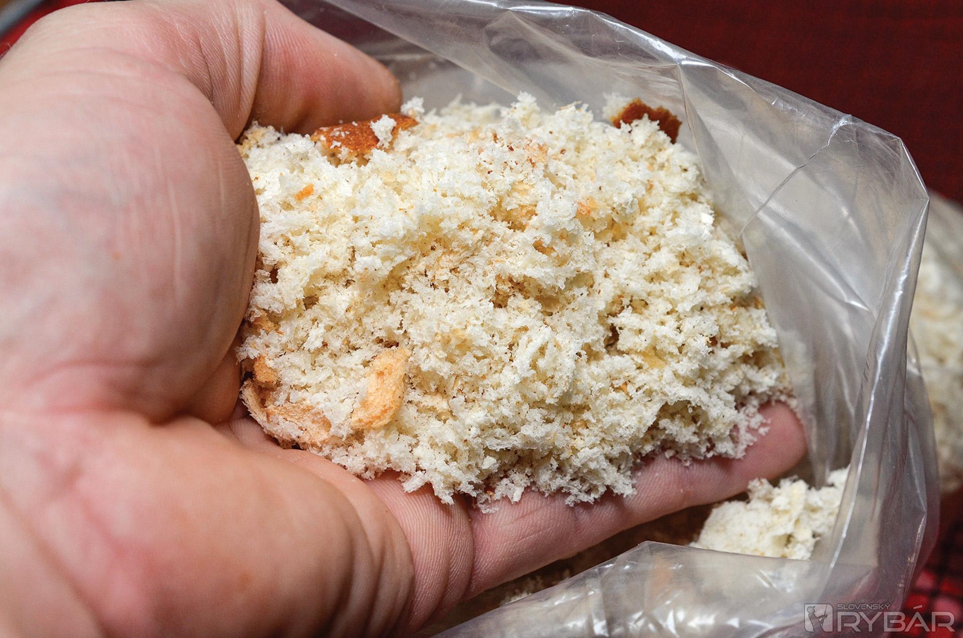 K vode nesiem len minimum výbavy a aj keď mám v úmysle vnadiť, kýblik dnes zostal doma, kde som si pripravil svoju obľúbenú zimnú návnadu do krmítka – rozmrvený chlieb (hrubšia chlebová strúhanka). Je to jednoduché krmivo, lacné a hlavne funguje. Ako si také krmivo pripraviť? Cez hrubé sito pretlačíme plátky čerstvého toustového chleba, a to je prakticky všetko. Vzniknutou posýpkou, plnú lákavých kúskov, ktorú k vode nesiem v igelitovom vrecúšku, plním krmítko bez toho, aby som ju vlhčil.