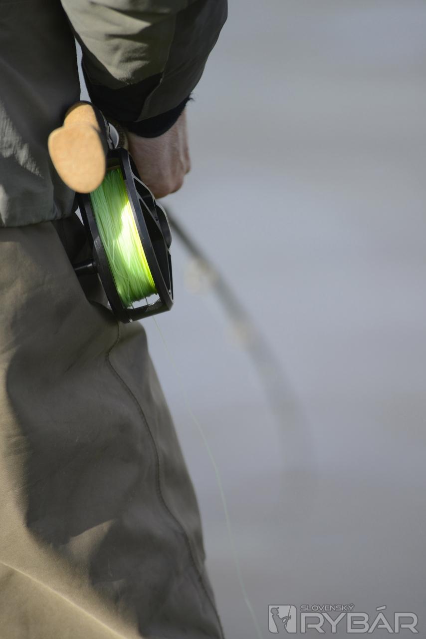 Zdolávanie menšieho lososa cca v hmotnosti 5 až 6 kilogramov na konci sezóny v októbri.