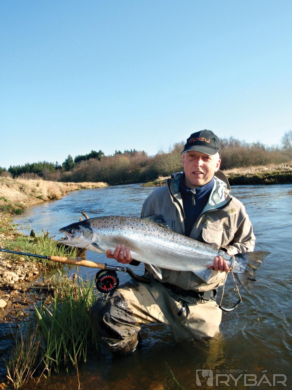 Aprílový losos ťažký asi 10 kilogramov z horného toku Skjern.