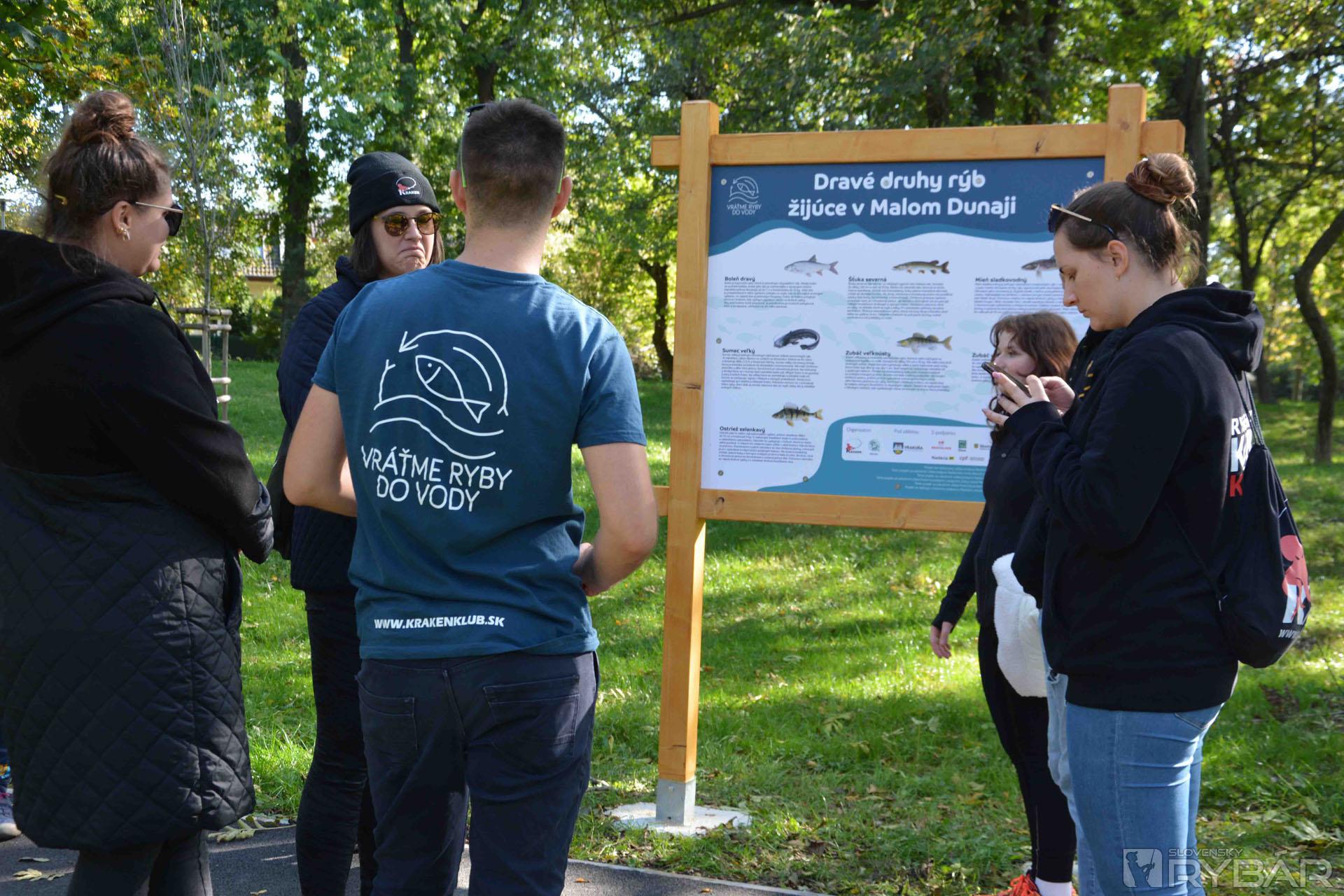 Počas celého podujatia si mohli deti i dospelí prísť pozrieť rybičky, ktoré boli v akváriách. Takýmto spôsobom bolo výborne vidieť ich charakteristické poznávacie znaky, na základe ktorých sa dajú odlíšiť. Zorganizovaná bola aj súťaž v ich rozpoznávaní. Bol to úžasný pohľad, vidieť tú snahu a odhodlanie pomôcť Malému Dunaju. Rodičia s deťmi stáli a počúvali inštrukcie. Deti boli poučené, ako premiestniť novú generáciu rýb do vody Malého Dunaja. Po transporte boli ryby postupne aklimatizované na teplotu vody a pomaly vypúšťané do toku. Deti mali k dispozícii desiatky malých vedierok na prenos rýb až priamo do rieky. Mólo sa postupne prehýbalo pod hmotnosťou nedočkavých mládežníkov a ich rodičov.