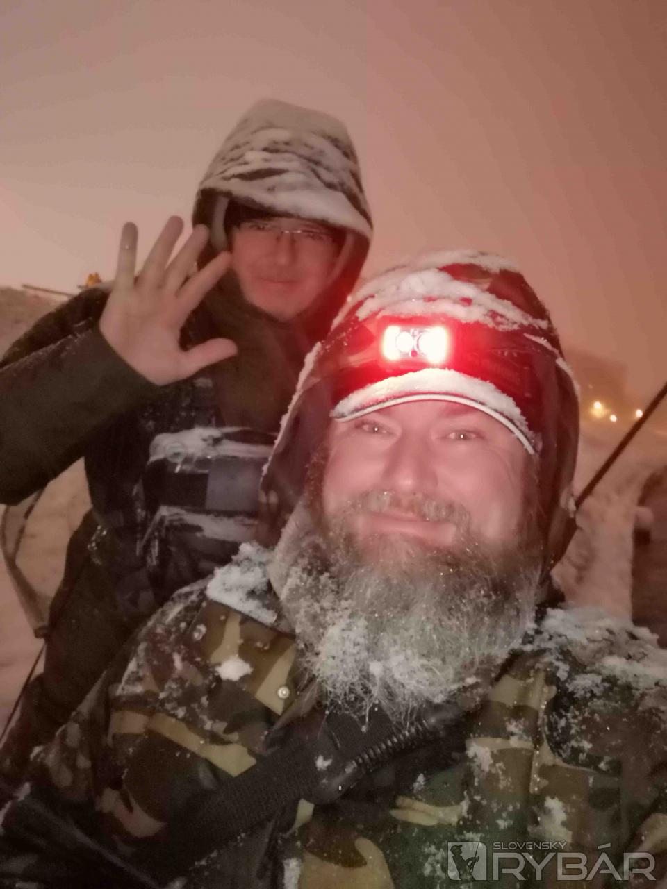 Rezeň veľkosti slonieho ucha ma krásne zasýtil, až som z toho zaspal. Nie nadlho, páč do mňa Martin nežne kopol, ako keď Ronaldo strieľa penaltu, so slovami: „Poďme, vstávaj, ideme k vode.“ Nestihnem ani oponovať a už sa obliekam. Od prebudenia uplynulo pár minút a už stojím pri rieke s prútom v ruke a silným tikom v oku. Čoskoro má Martin na prúte ďalšiu menšiu hlavátku, takže dnes som dvorný fotograf... Predsa to tak nenechám a začínam sa sústrediť v presných hodoch do miest, kde ju očakávam. Je to drina, ale nepoľavujem. Chce sa mi čúrať, ale nie je čas, tak potrénujem svaly na mechúre. Zrazu vidím, ako mi Martin posiela dohodnutý signál blikaním čelovky: „Hej, mám rybu, rýchlo podberák!“ Pravou rukou pokladám prút a ľavou, zároveň vo vývrtke s piatimi otočkami, beriem podberák a rýchlosťou geparda sa prepletám medzi padajúcimi vločkami snehu a steblami trávy. Za pár nanosekúnd som u Martina, ktorý sedí v snehu a fučí ako lokomotíva Tomáš. „Kámo, spadla mi životná ryba,“ hovorí a ja konečne chápem, prečo je prút zapichnutý v snehu ako oštep Jana Železného v najlepšej forme. Chvíľu rozoberáme, čo sa stalo a prečo je výsledok taký, aký je. Vedel som, že o tejto rybe budem dlho počúvať (nemýlil som sa...) a ako to už tak býva, do konca doby lovu už žiadna ryba neprišla. Opúšťame teda miesto a hurá do perín!
