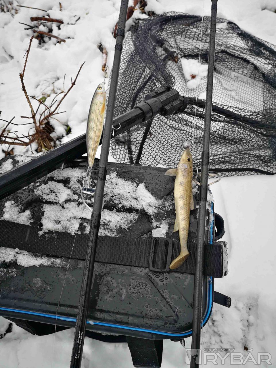 Budíček o 6.30, kopneme do seba kávu a ideme k rieke. Všade okolo Zvolena sneží, len tu je azuro a mrzne ako v Mrázikovi. Denné svetlo nám ukazuje rieku a my si ju môžeme konečne pozrieť. Sme síce v regulácii a tá sa zle číta, ale aj tak ju pomaly prechytávame a mapujeme. Dopoludnia prišlo pár kontaktov od podustiev a mrien (v takom množstve a takých veľkostiach som ich ešte nikdy nevidel). Popoludní meníme miesto a ideme ďalej po prúde. Rozostavujeme sa strategicky zhruba 50 m od seba a začíname chytať. Po chvíli vidím Martinov ohnutý prút, nuž beriem podberák a idem pozrieť, čo sa tam deje. Keďže je Martin celkom v pokoji, nijako sa neženiem. Prídem bližšie a vidím, že vobler uviazol v nejakej prekážke celkom blízko brehu. Marťas má neoprény, tak sa vrhá na záchranu voblera (dedko jeden, má celkom odvahu, keď je tam skoro po prsia a nevidí si pod nohy). Čo by som to bol za kamaráta, keby som mu nepodržal prút v jednej ruke a zapnutý foťák v ruke druhej...