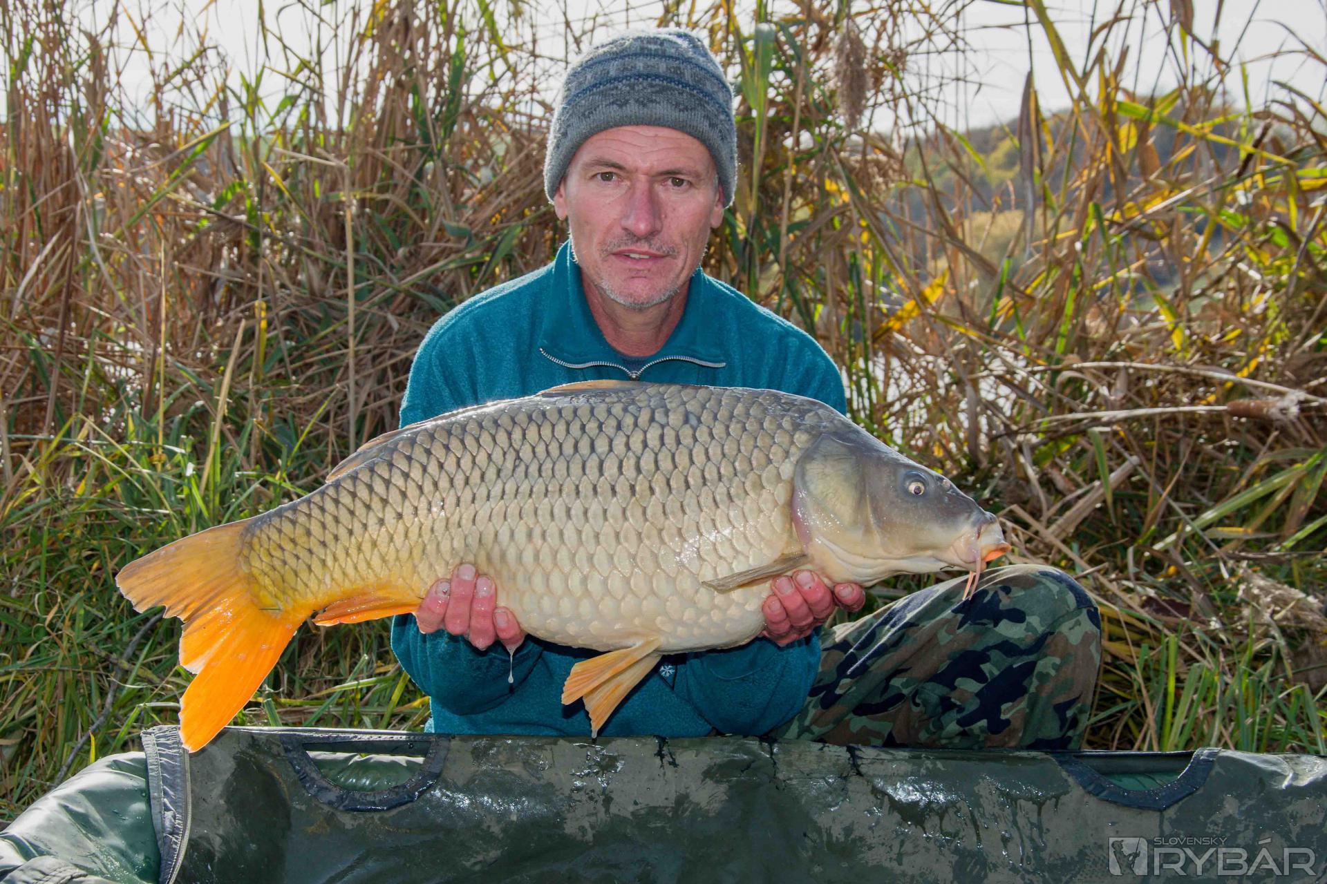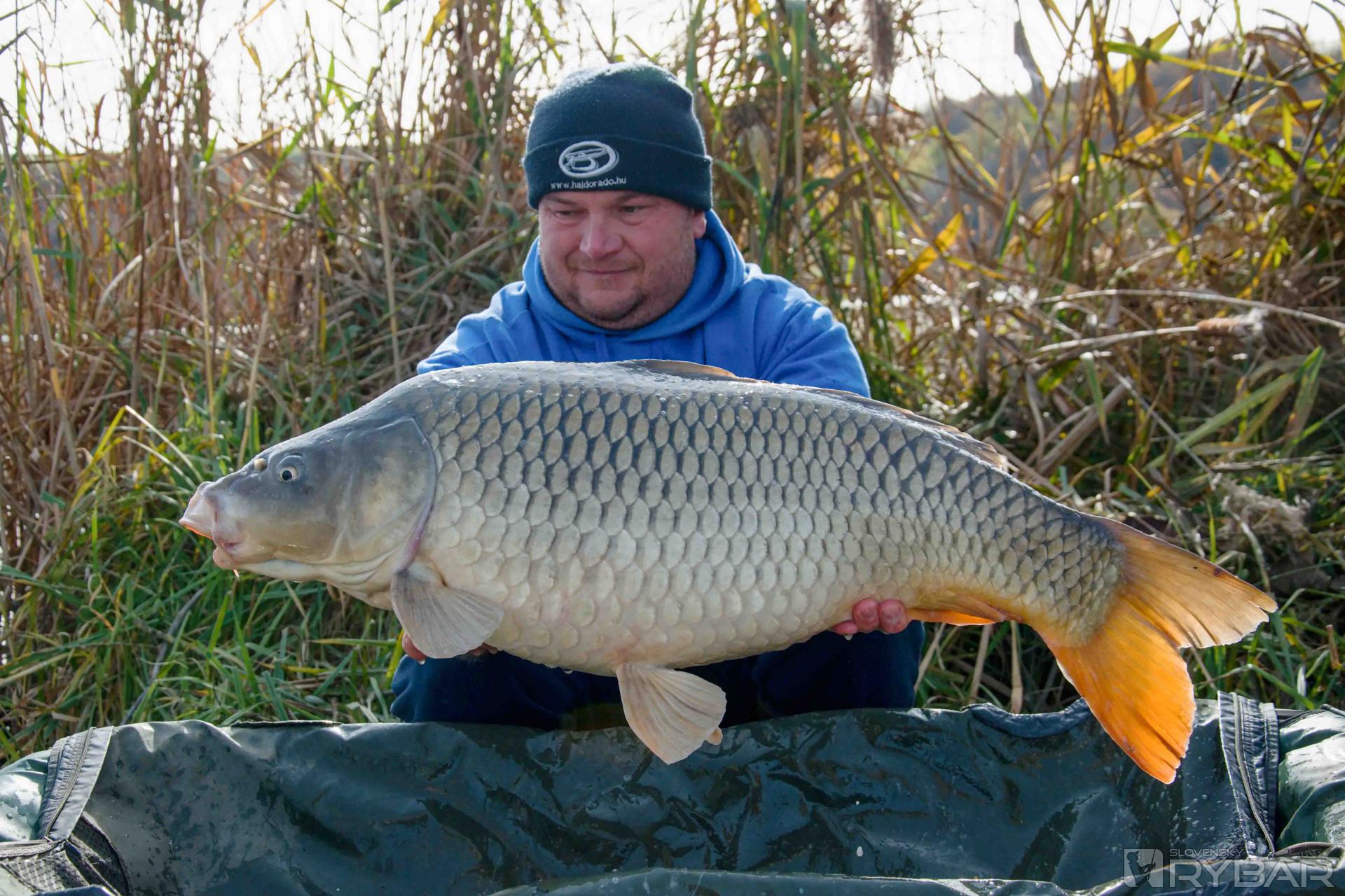 Na svoje prúty sme sa asi päť minút nedívali a iba teraz sme si všimli, že máme zábery všetci traja, nuž sme spoločne zdolávali. Áron vytiahol karasa, Imrich mal 9 kg kapra a ja som ešte stále opatrne zdolával svojho súpera, ktorý sa nechcel odlepiť od dna jazera. Mne to však neprekážalo, ja som trpezlivý rybár a nikdy nezdolávam rybu silou, ale jemne a opatrne. Moje zdolávanie trvalo asi 40 minút a pred objektívom sa ocitol kapor s hmotnosťou 12,30 kg a po hodinke ďalší kapor 8,80 kg.