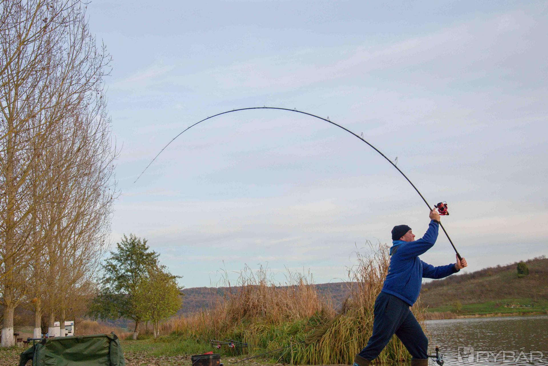Pri vode vystúpime z auta a konštatujeme, že je zima a určite nám budú mrznúť ruky, nohy aj očká na feedrových prútoch. V rýchlosti sme sa dohodli na taktike lovu a zaujali sme rybárske miesta. Ja som si vybral – ako skoro vždy – pravé miesto, kde je už chránená rybia oblasť. Môj mladý, iba 13-ročný zverenec Áron si sadol vedľa mňa na ľavú stranu a Imrichovi ostalo miesto naľavo od Árona. Dohodli sme sa na tom, že každý bude nahadzovať do maximálnej vzdialenosti čo najpresnejšie. Samozrejme, že Áron nahadzoval najbližšie, a to na 80 metrov, Imrich na 100 metrov a ja som svoje Long Cast method košíky vedel nahodiť aj na 120 metrov.