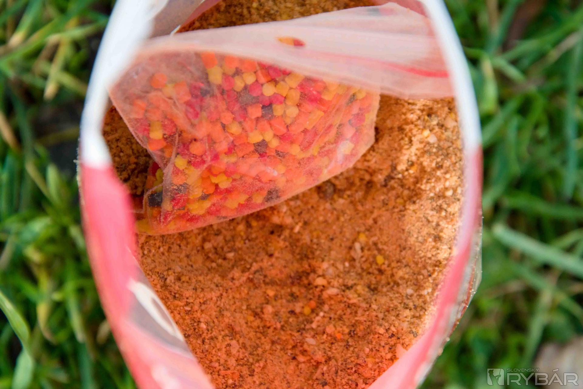 Svoje rybárske miesto som si pripravil za 15 minút. Zapichol som do tvrdej, zmrznutej zeme držiaky prútov, poskladal 2 feedrové prúty, podberák, vaničku pod úlovok, váhu, dezinfekciu, vyberač háčika. Ostávalo mi iba namiešať krmivo. Na túto rybačku som si zvolil krmivo Tornado Method Mix s príchuťou Mango. Na začiatok som si namiešal iba 2 balenia tohto krmiva. Zaujímavosťou tohto krmiva je, že obsahuje farebné mikropelety, ale sú balené zvlášť v malom vrecku a rybár sa môže rozhodnúť, či ich pridá do navlhčeného krmiva alebo použije krmivo bez pridania týchto mikropeliet. Ja som si bol istý, že nejaké kapry nachytám a mikropelety som pridal do krmiva. Na konci rybačky mi už bolo jasné, že to bola dobrá voľba. Všetko som už mal hotové na to, aby som mohol začať loviť ryby.