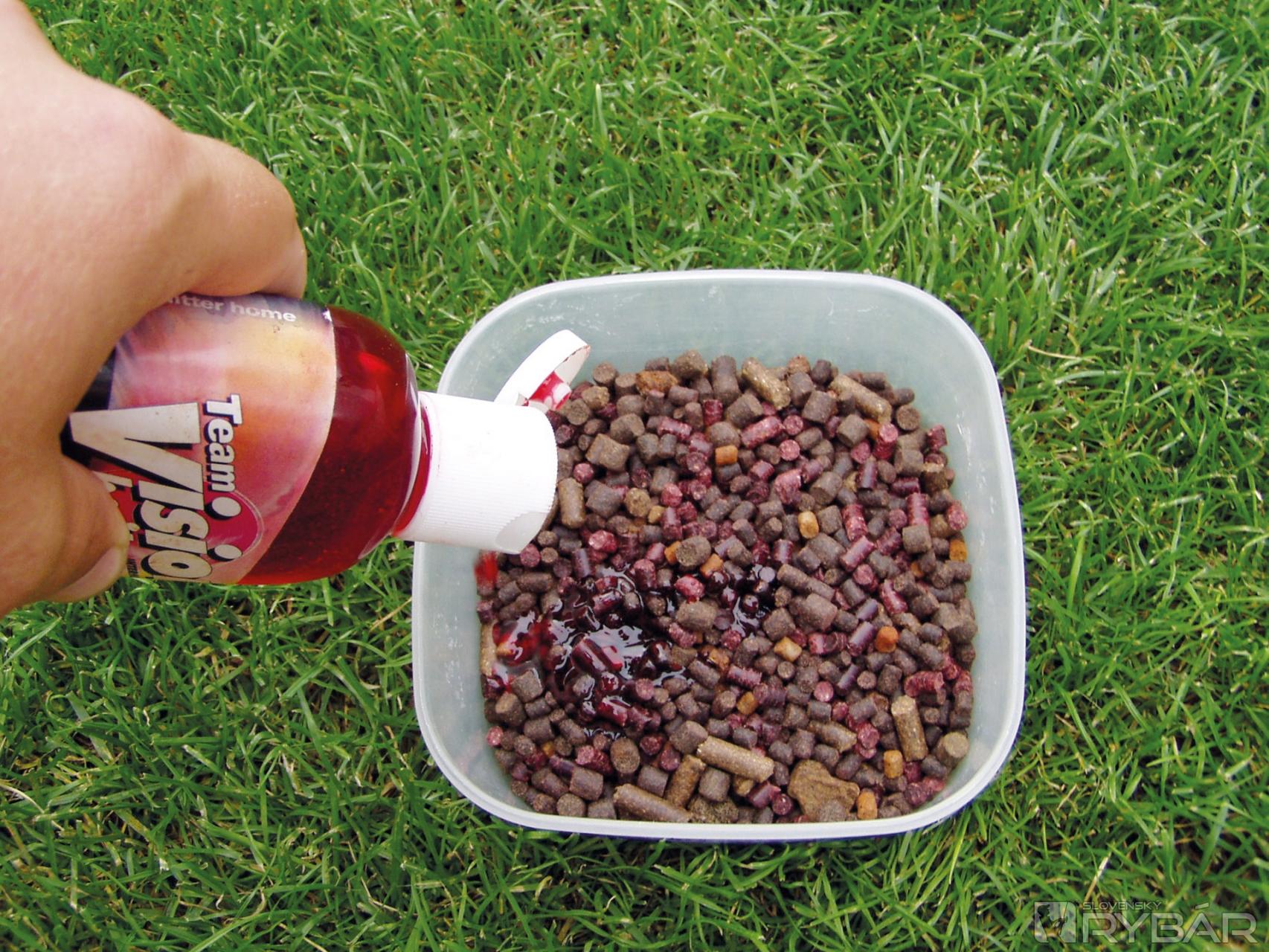 Pri tomto spôsobe už kŕmim skoro výhradne peletami malých rozmerov a hlavne rýchlou dobou rozpadu (max. hodinu, lebo na viac nemáte čas). Tieto pelety však už zatraktívňujem. Mám na to niekoľko variantov.